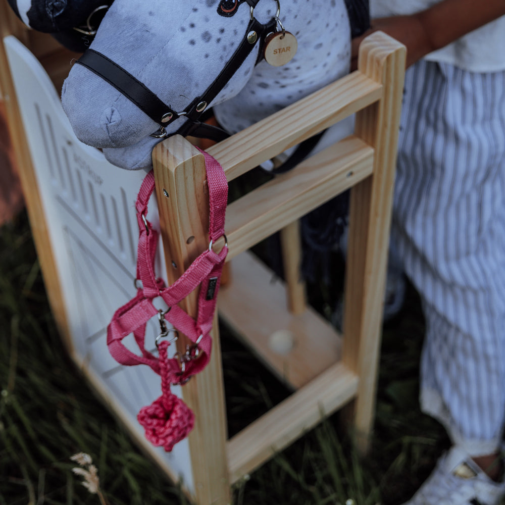 Mit dieser liebevoll gestalteten Steckenpferdebox schaffst du einen festen Platz für die liebsten Reittiere deines Kindes – und genau das sorgt für Ruhe, Übersicht und ein kleines Stück Magie im Kinderzimmer. Deine beiden Steckenpferde stehen sicher und ordentlich nebeneinander, ganz egal wie lang ihre Stangen sind, und warten in ihrem eigenen kleinen Stall auf das nächste Abenteuer.