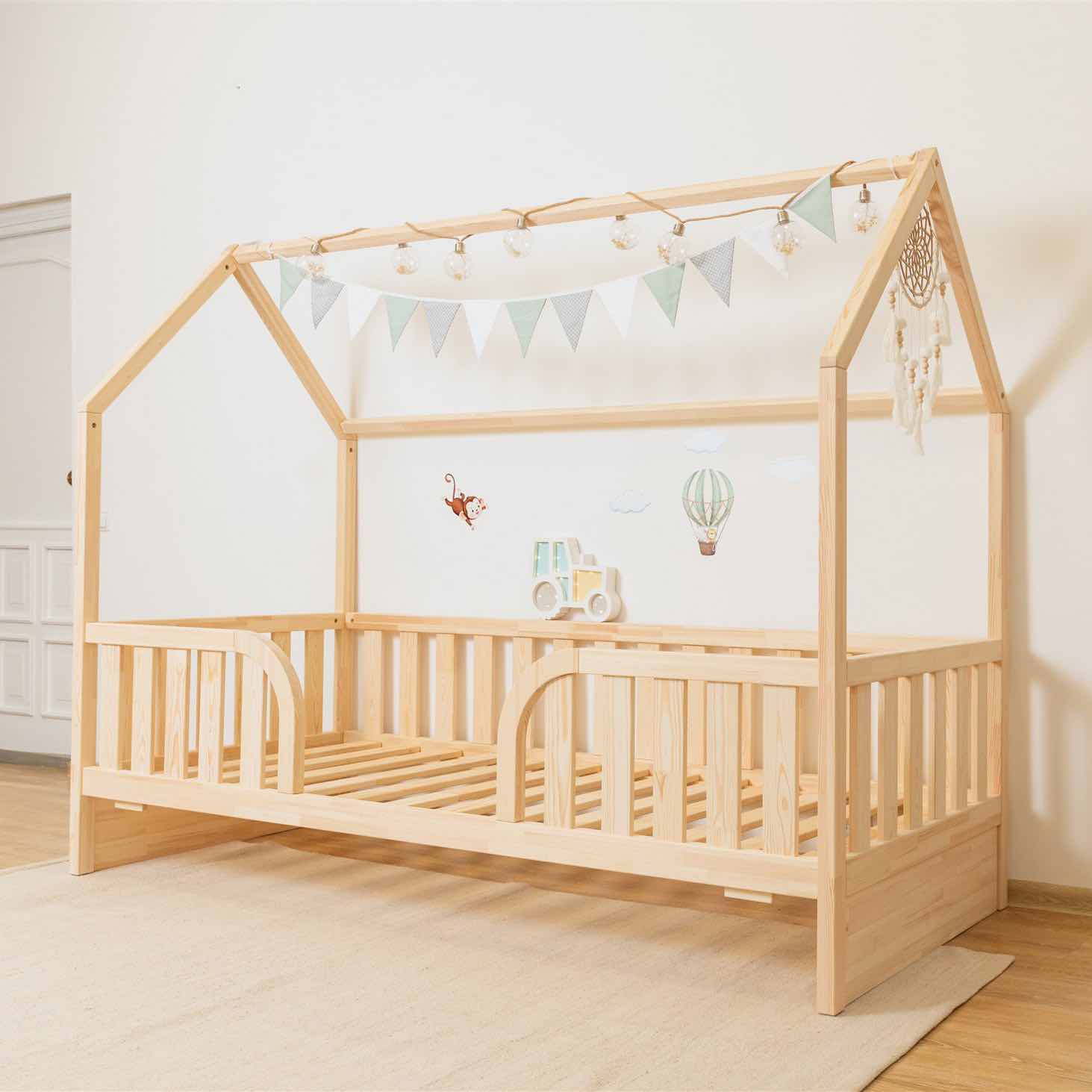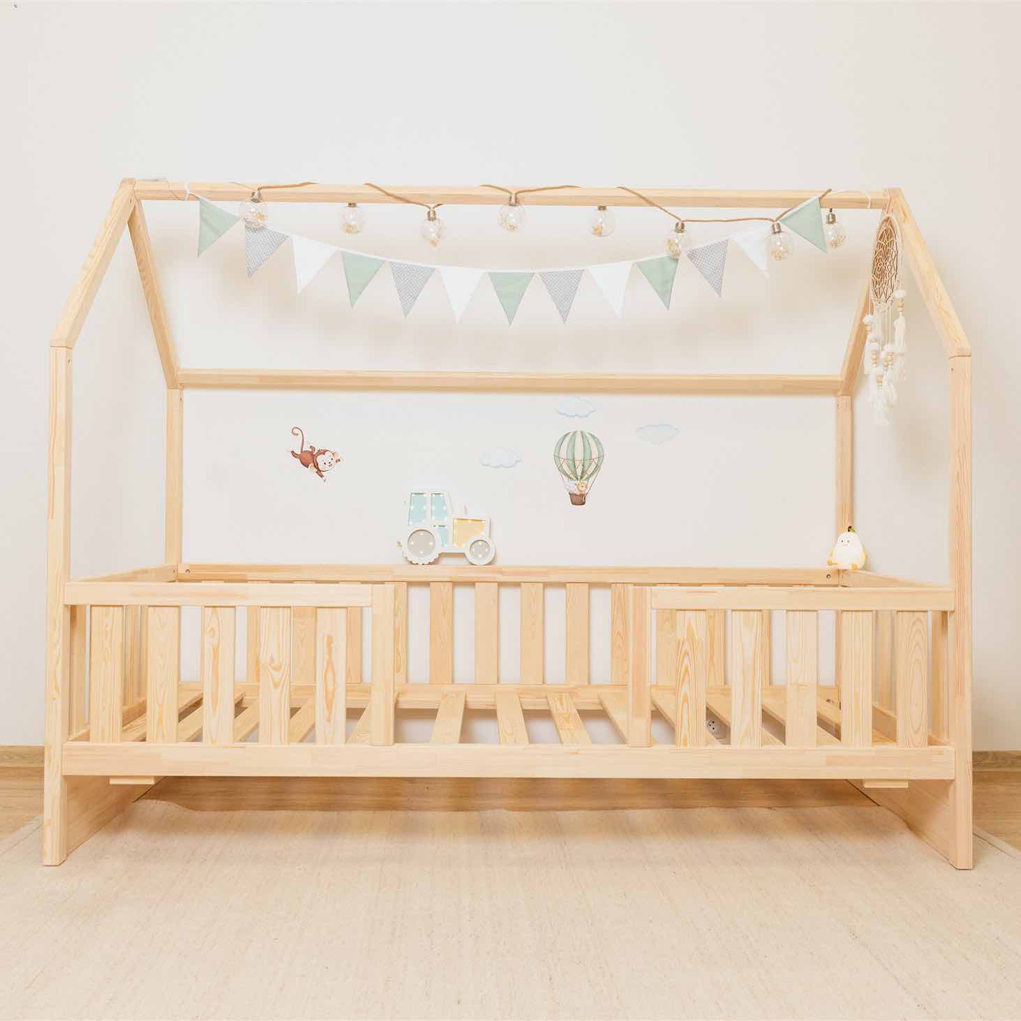 Das Kinderbett Roko schafft eine liebevolle und sichere Schlafumgebung, in der sich dein Kind geborgen fühlt. Erhältlich in den Farben Weiß, Natur oder einer unserer anderen, individuellen Farboptionen sowie in verschiedenen Größen, kannst du ganz nach deinen Bedürfnissen und dem Platzangebot wählen. Hergestellt aus massivem FSC-zertifiziertem Kiefernholz und veredelt mit kindersicheren Wasserfarben oder Bienenwachs, bietet das Bett eine unbedenkliche, langlebige Schlafumgebung.