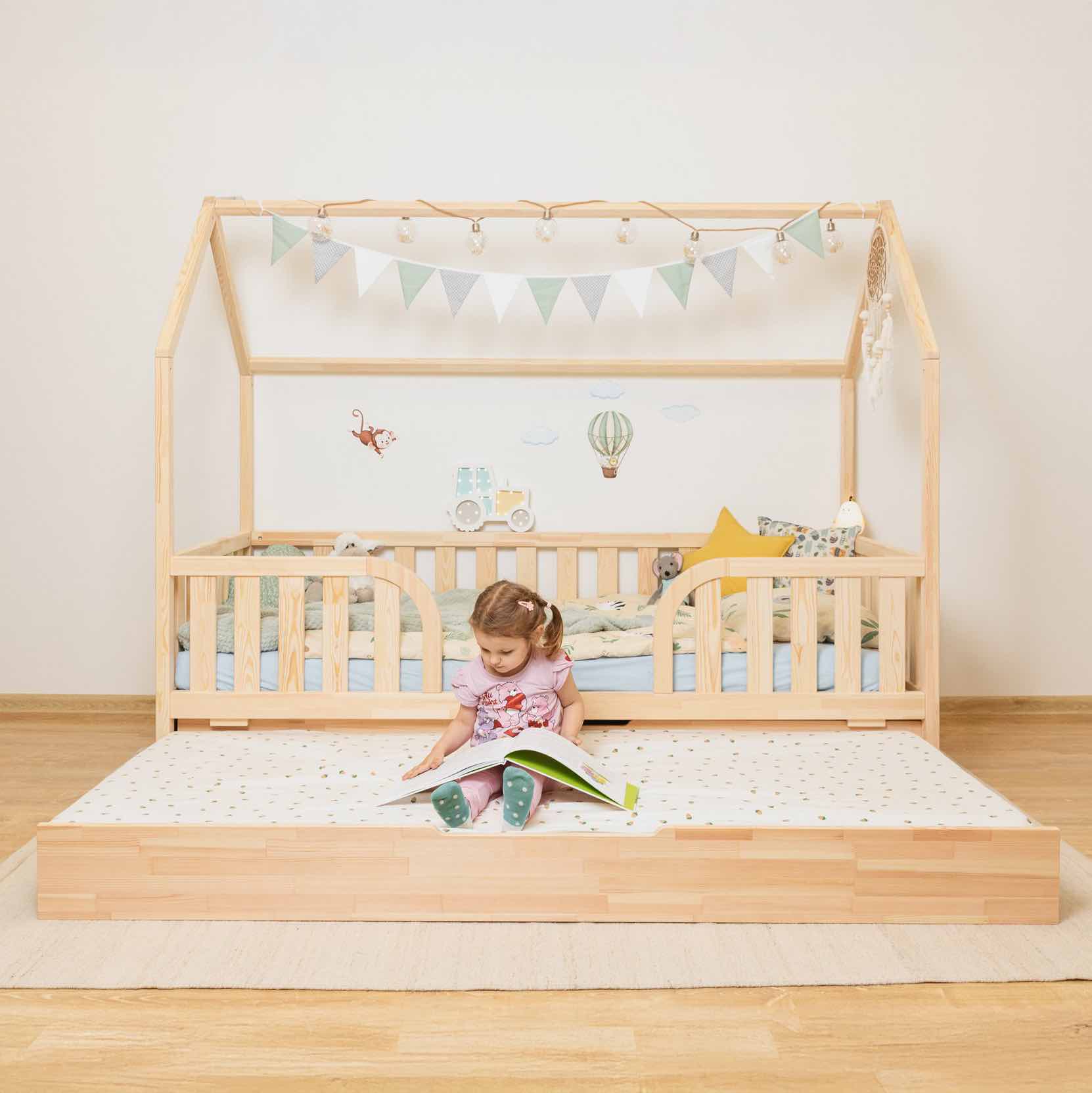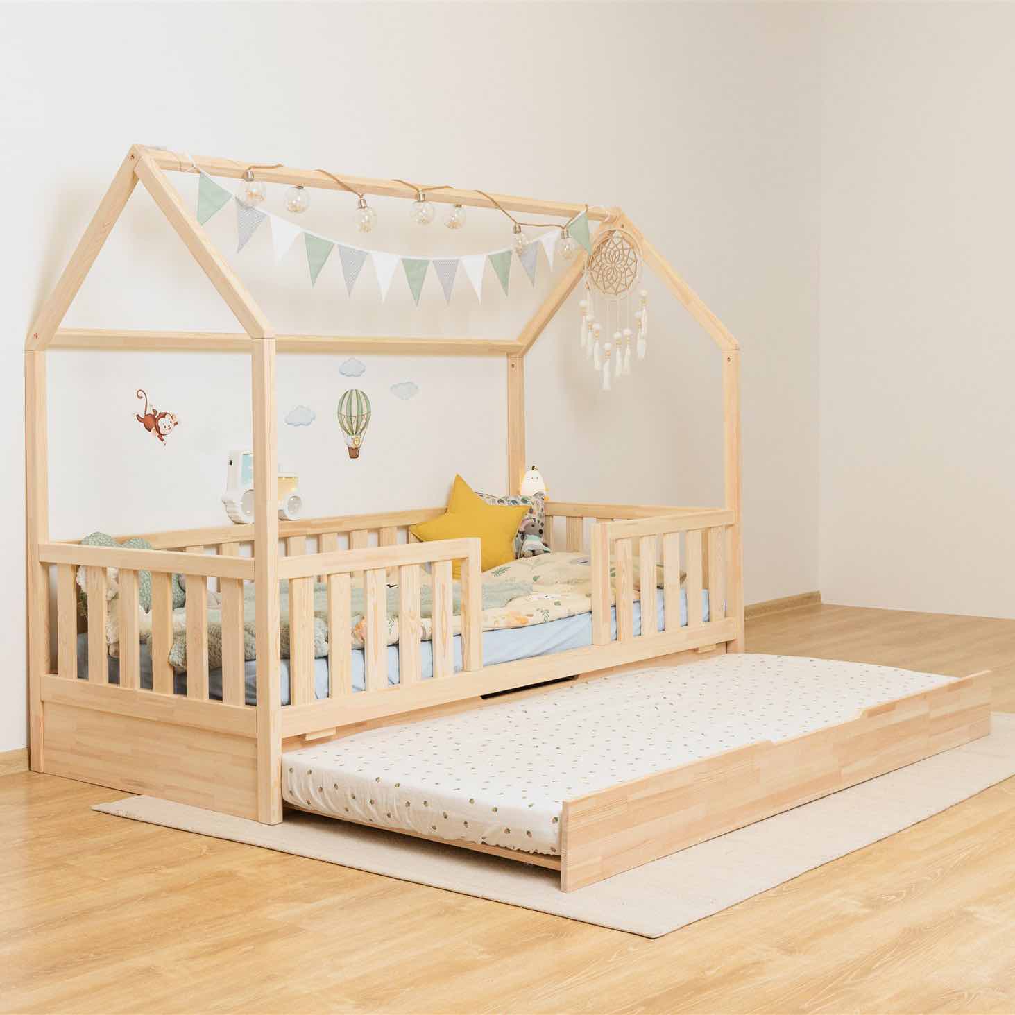 Das besondere Highlight des Roko-Betts ist das ausziehbare Zusatzbett. Wenn Freunde über Nacht bleiben, kannst du im Handumdrehen ein weiteres Bett zaubern. Nach dem Gebrauch lässt es sich leicht wieder verstauen, sodass sofort wieder Ordnung im Kinderzimmer herrscht. So sorgt das Roko-Bett nicht nur für sicheren Schlaf, sondern auch für fröhliche Stunden mit kleinen Gästen.