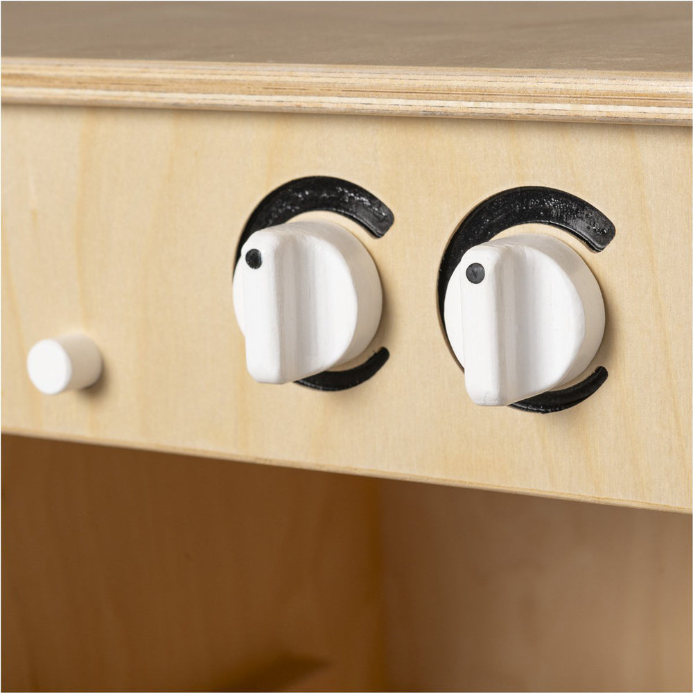 Beim Ein- und Ausräumen entwickelt dein Kind auf natürliche Weise motorische Fähigkeiten und lernt spielerisch den Alltag kennen. Die beweglichen Elemente wie Besteckkasten und Tellerhalter regen die Vorstellungskraft an und sorgen immer wieder für neue Spielsituationen.