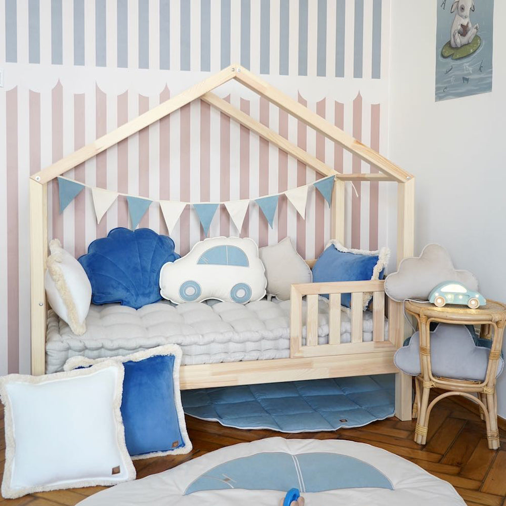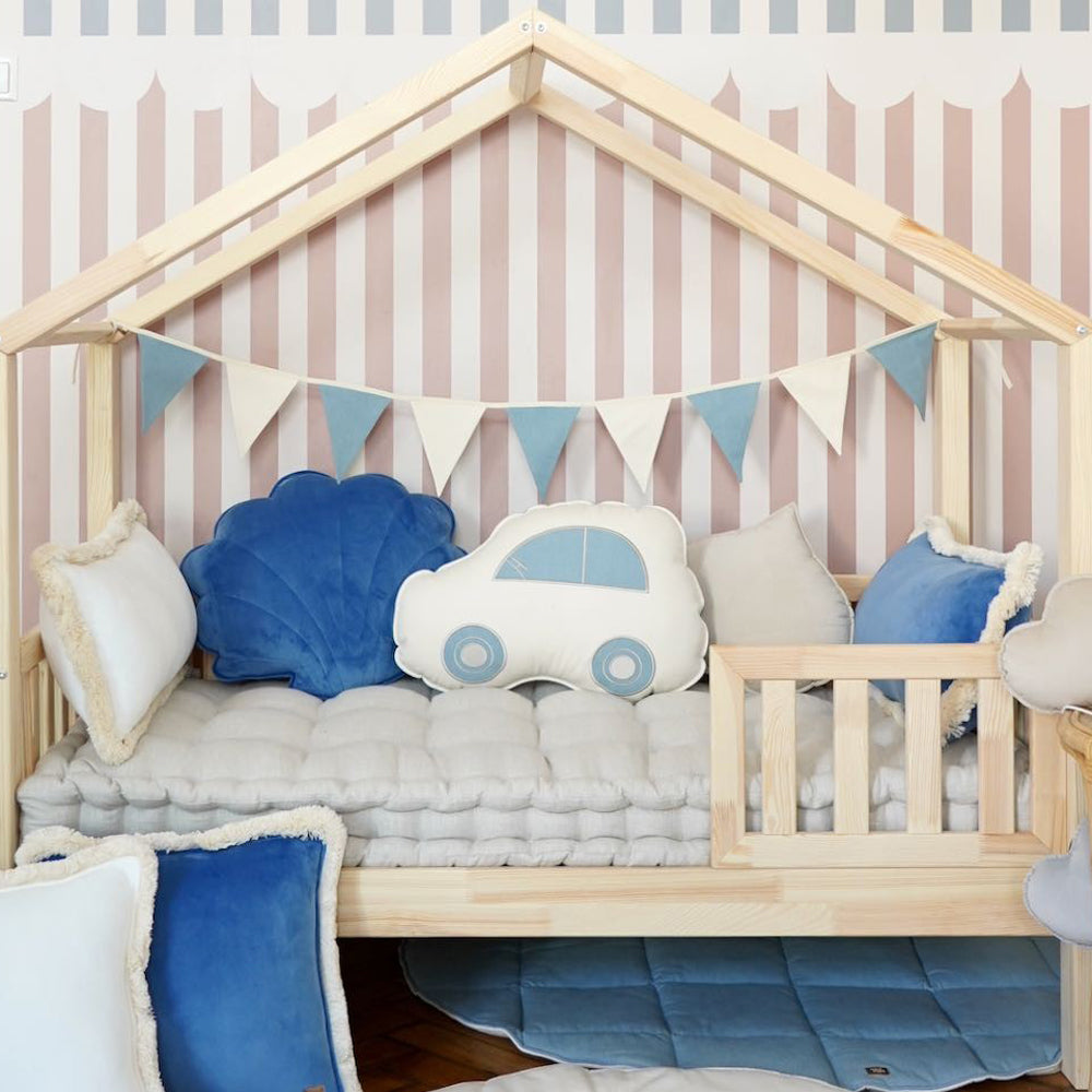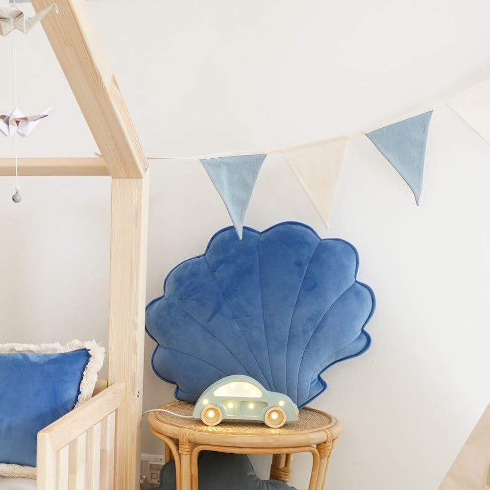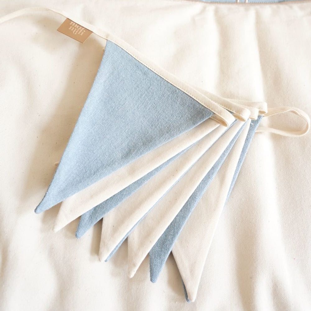 Verwandle das Kinderzimmer in einen Ort voller Wärme und Fantasie – mit unserer Wimpelgirlande in Jeansoptik. Die zarten Stoff-Wimpel aus 100 % Baumwolle schaffen eine gemütliche Atmosphäre, in der sich dein Kind geborgen fühlt und seine kleine Welt entdecken kann.