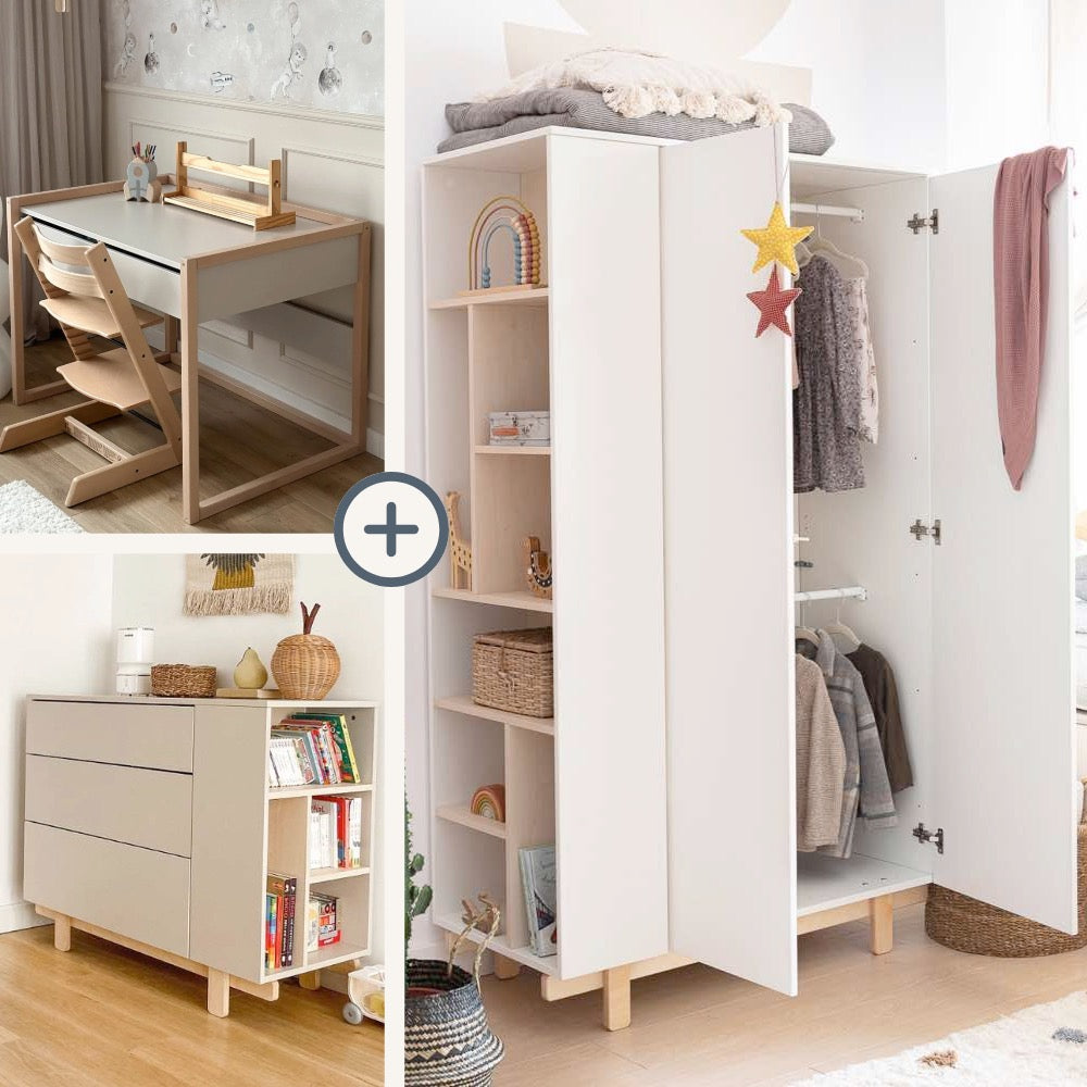Kinderzimmer-Set Mellou - Kommode, Kleiderschrank & Schreibtisch