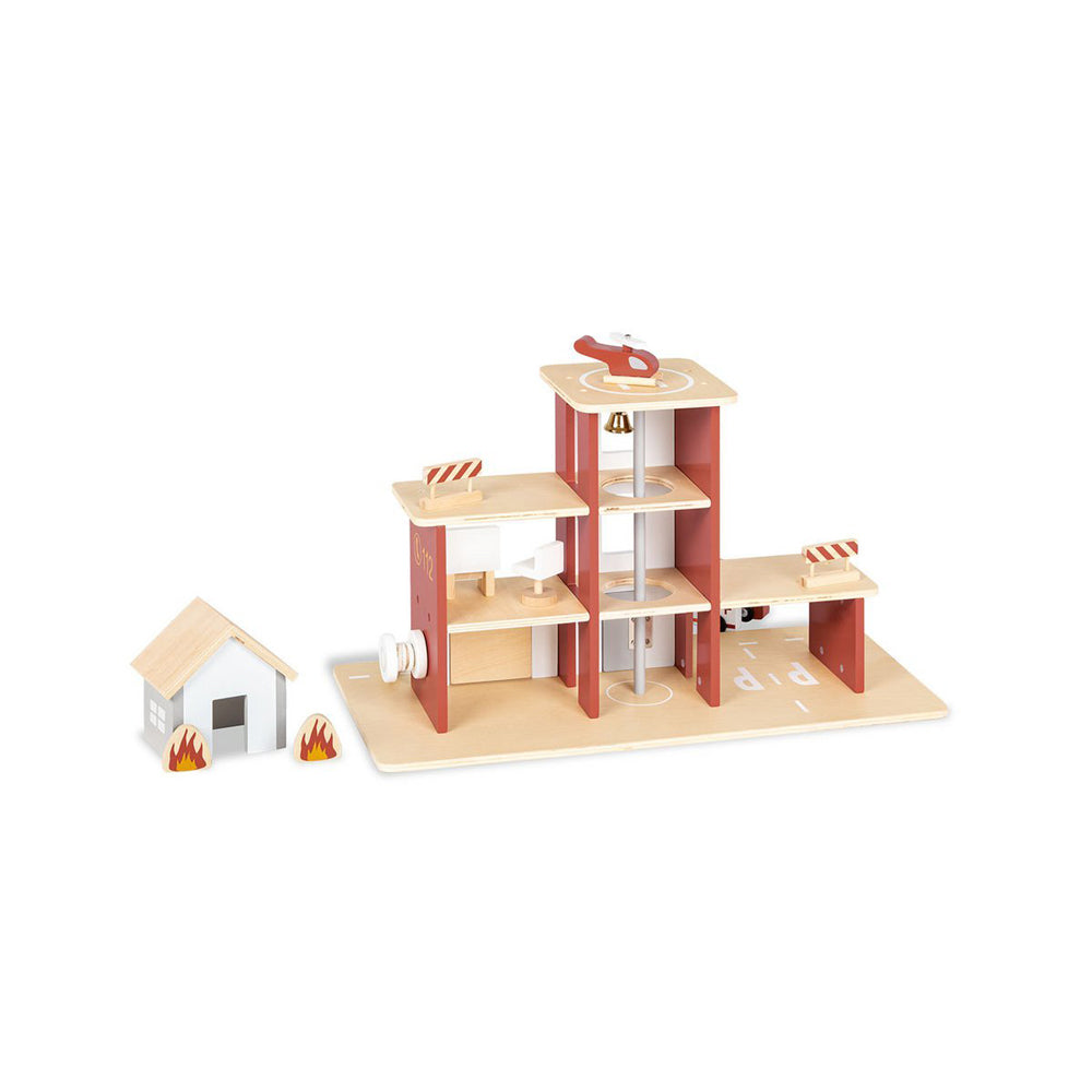 Feuerwehrwache aus Holz mit Zubehör, 12-teilig