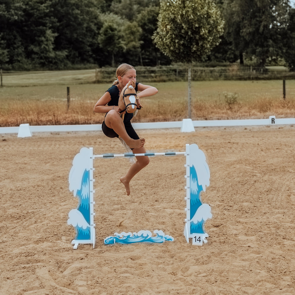 Mit dem Hobby-Horse-Hindernis „Wellen“ in Weiß/Blau holst du den Nervenkitzel von Wassersprüngen direkt in euren Garten oder das Kinderzimmer. Dein Kind erlebt spielerisch, wie es sein Steckenpferd über „Wasserhindernisse“ führen, und tauchen in fantasievolle Parcours ein, die Kreativität und Abenteuerlust wecken.