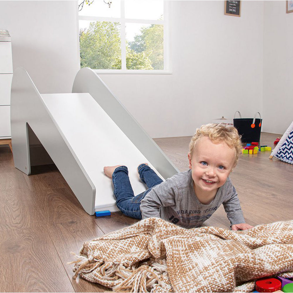In modernem Grau-Weiß gehalten, fügt sich die Rutsche harmonisch in jedes Zuhause ein und wird schnell zu einem festen Bestandteil des Familienalltags. Ob als schneller Spaß zwischendurch oder als wichtiger Teil des täglichen Bewegungsrituals – diese robuste Indoor-Rutsche schenkt Freude, Selbstvertrauen und jede Menge Action.
