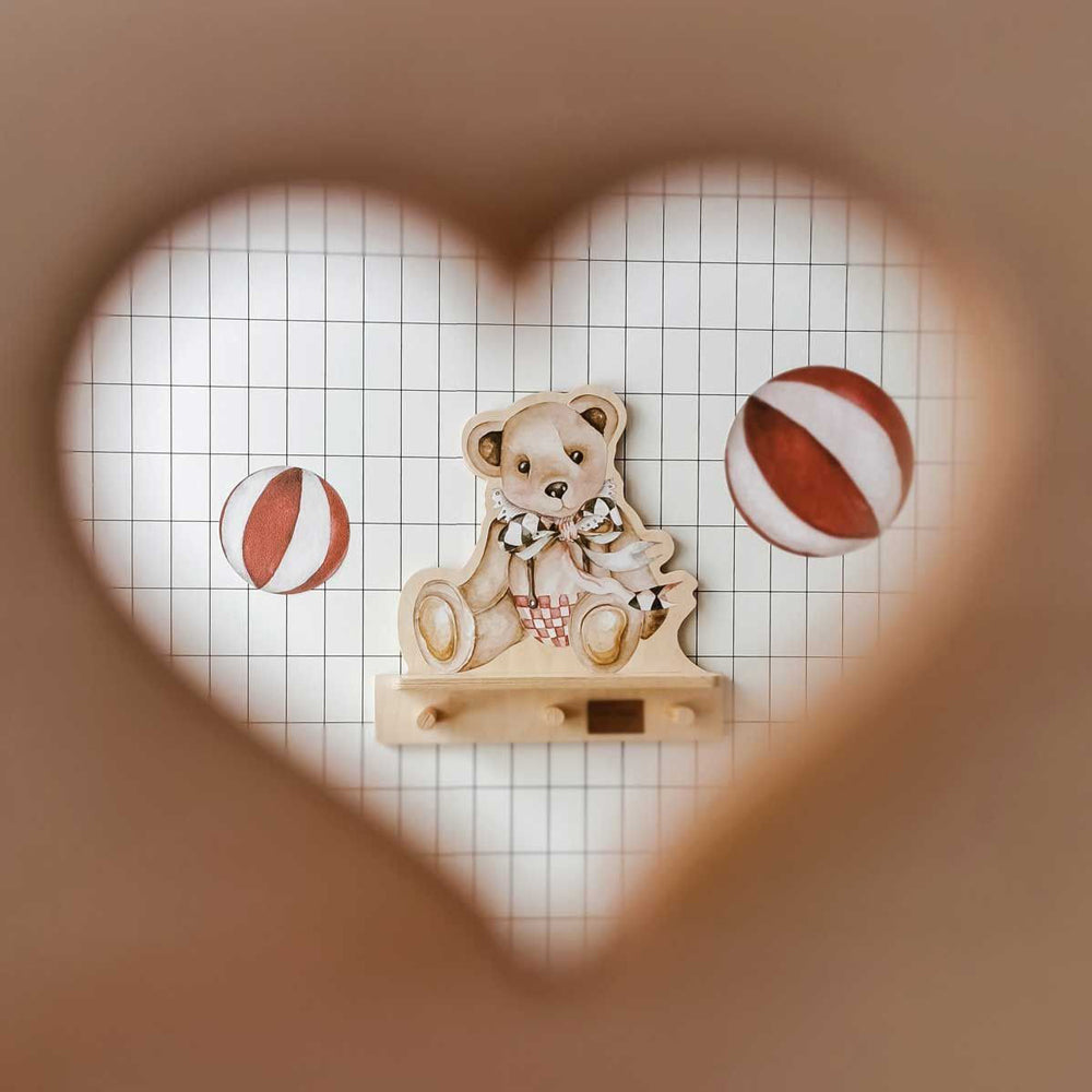 Mit seiner kompakten Größe passt das Regal ideal neben das Kinderbett, den Schreibtisch oder sogar in den Flur. Das 6 cm tiefe Ablagefach eignet sich perfekt für kleine Dekorationen oder Alltagsgegenstände, die immer griffbereit sein sollen. So lernt dein Kind spielerisch, Ordnung zu halten, während das fröhliche Teddybär-Design ein Lächeln ins Gesicht zaubert.