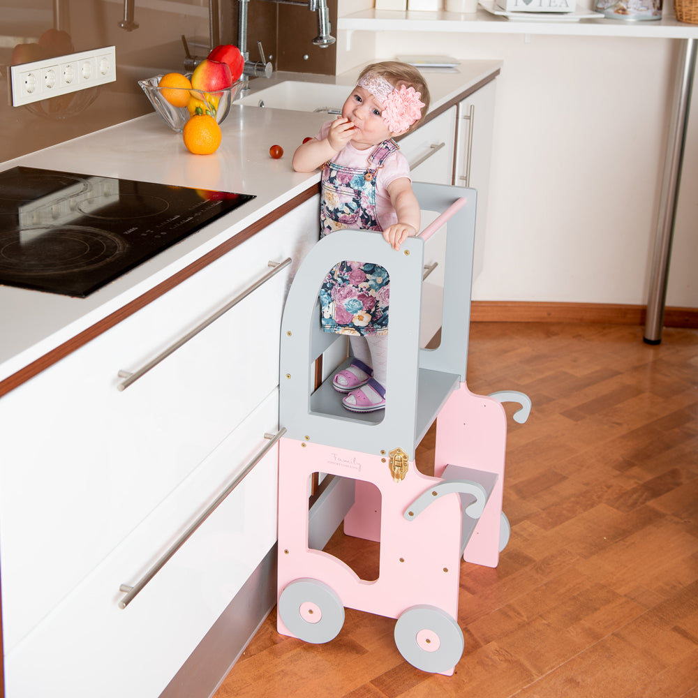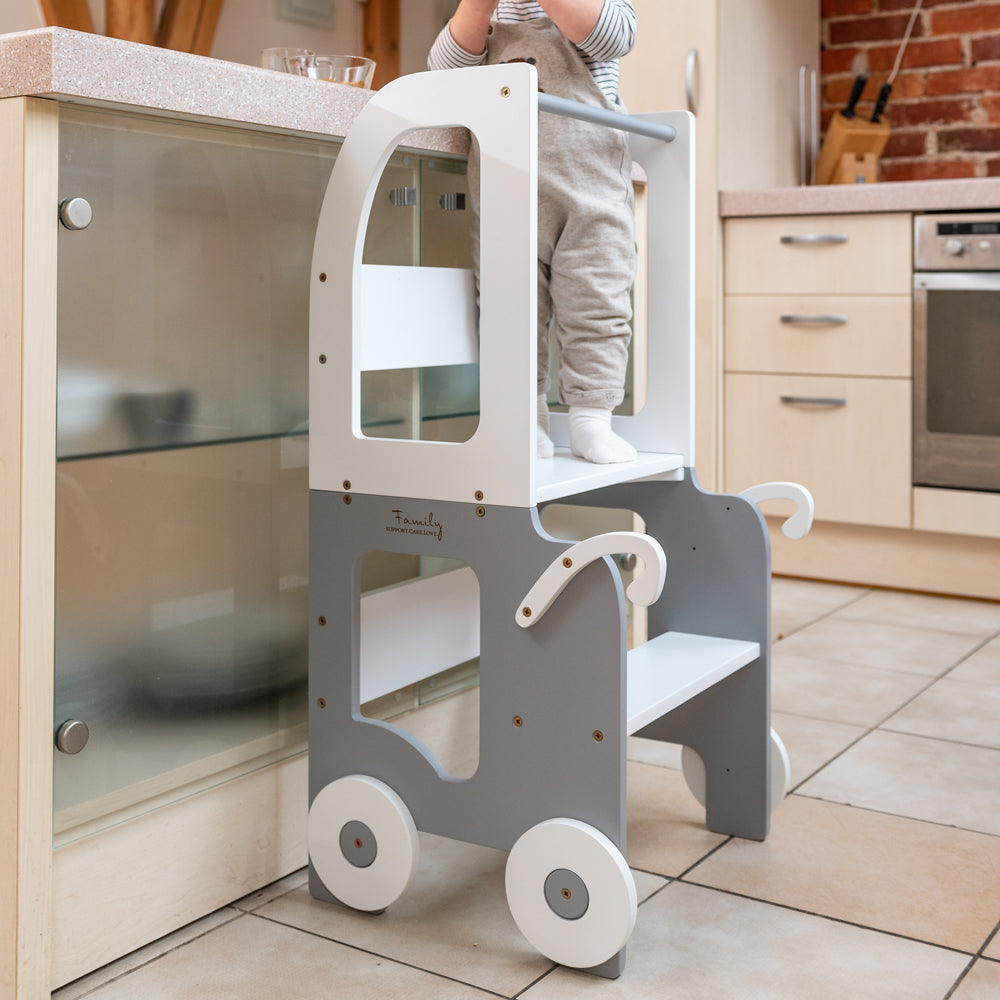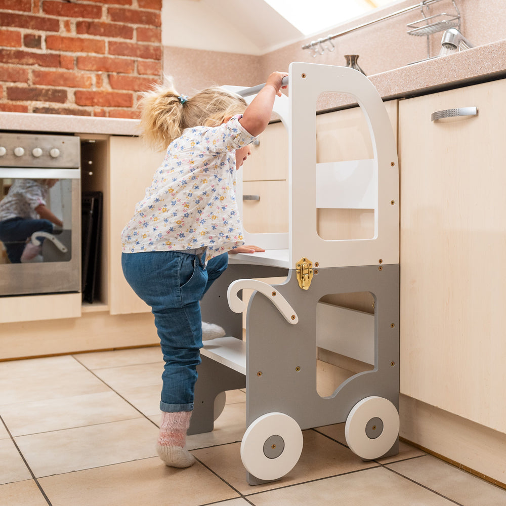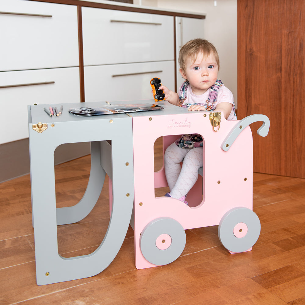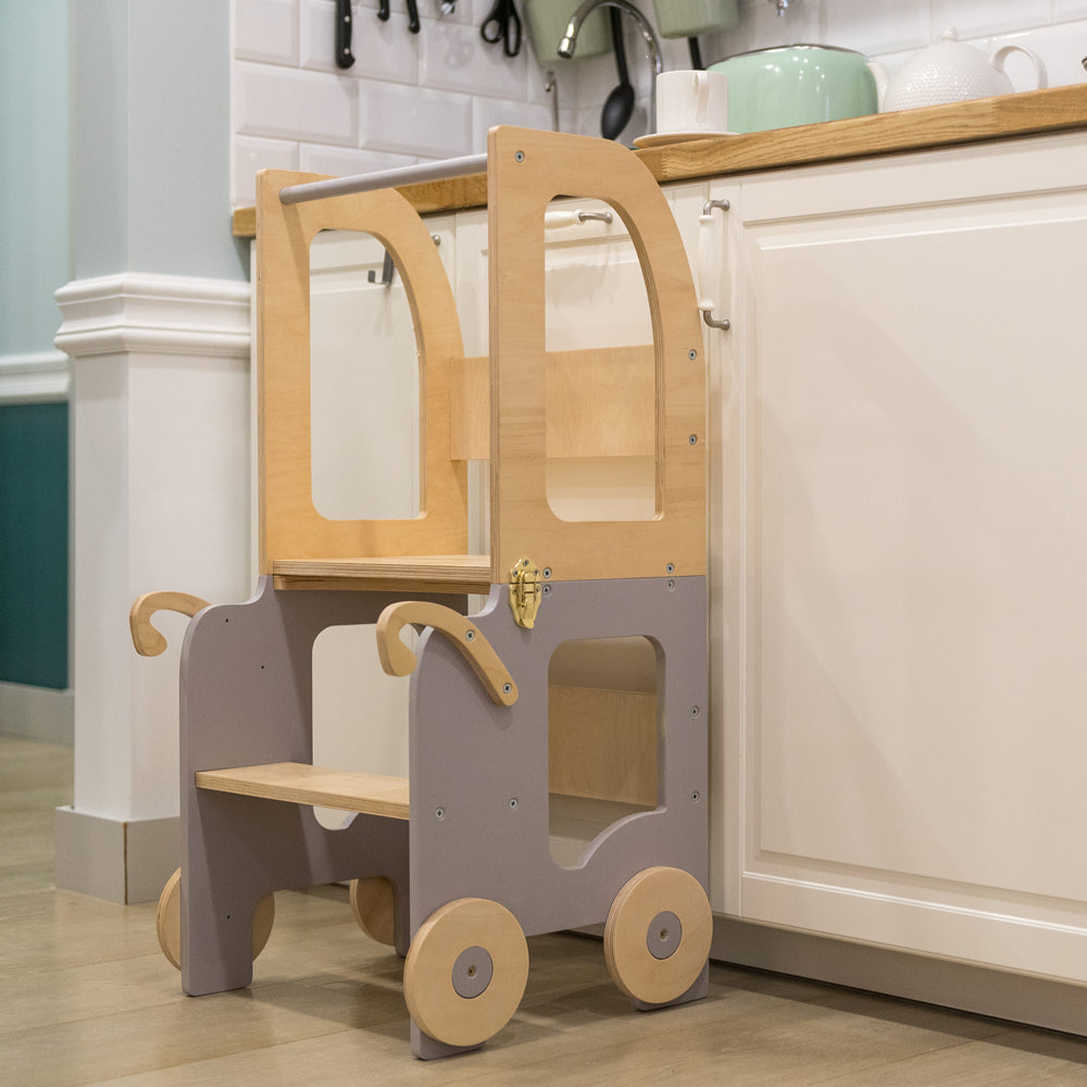 2in1 Lernturm umbaubar, Küchenhelfer & Sitz-Tischset Auto-Look