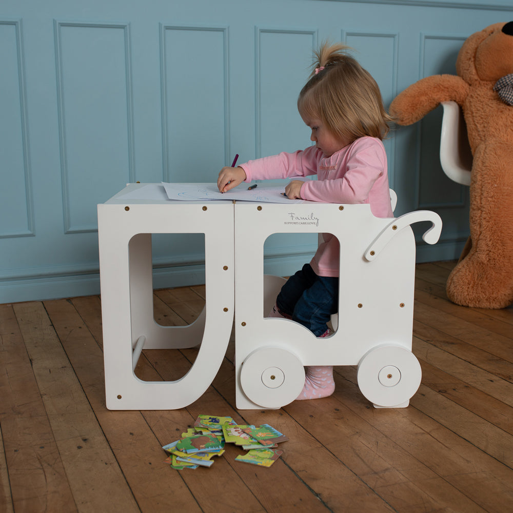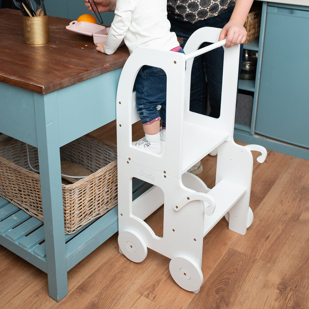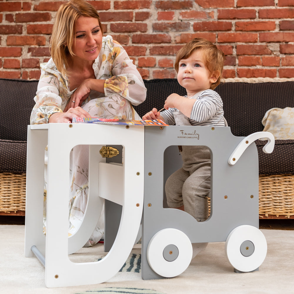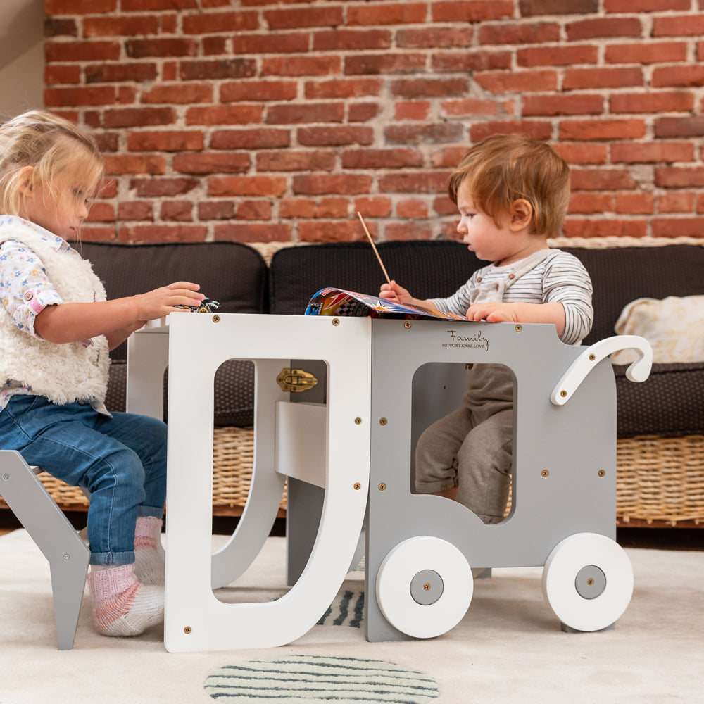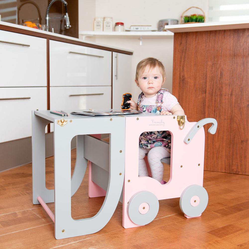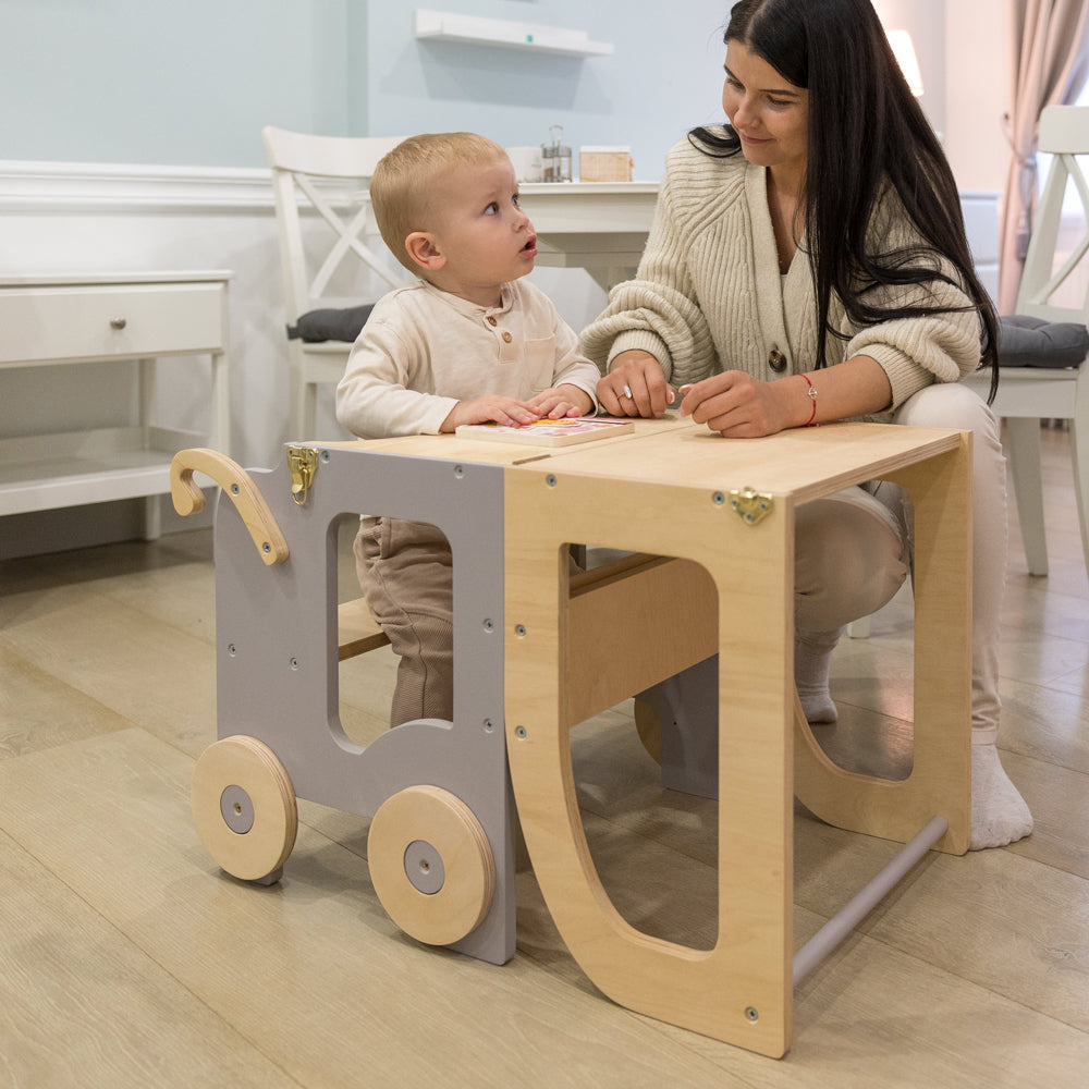 2in1 Lernturm umbaubar, Küchenhelfer & Sitz-Tischset Auto-Look