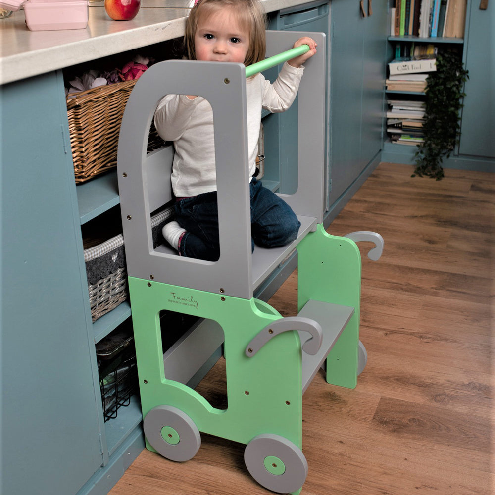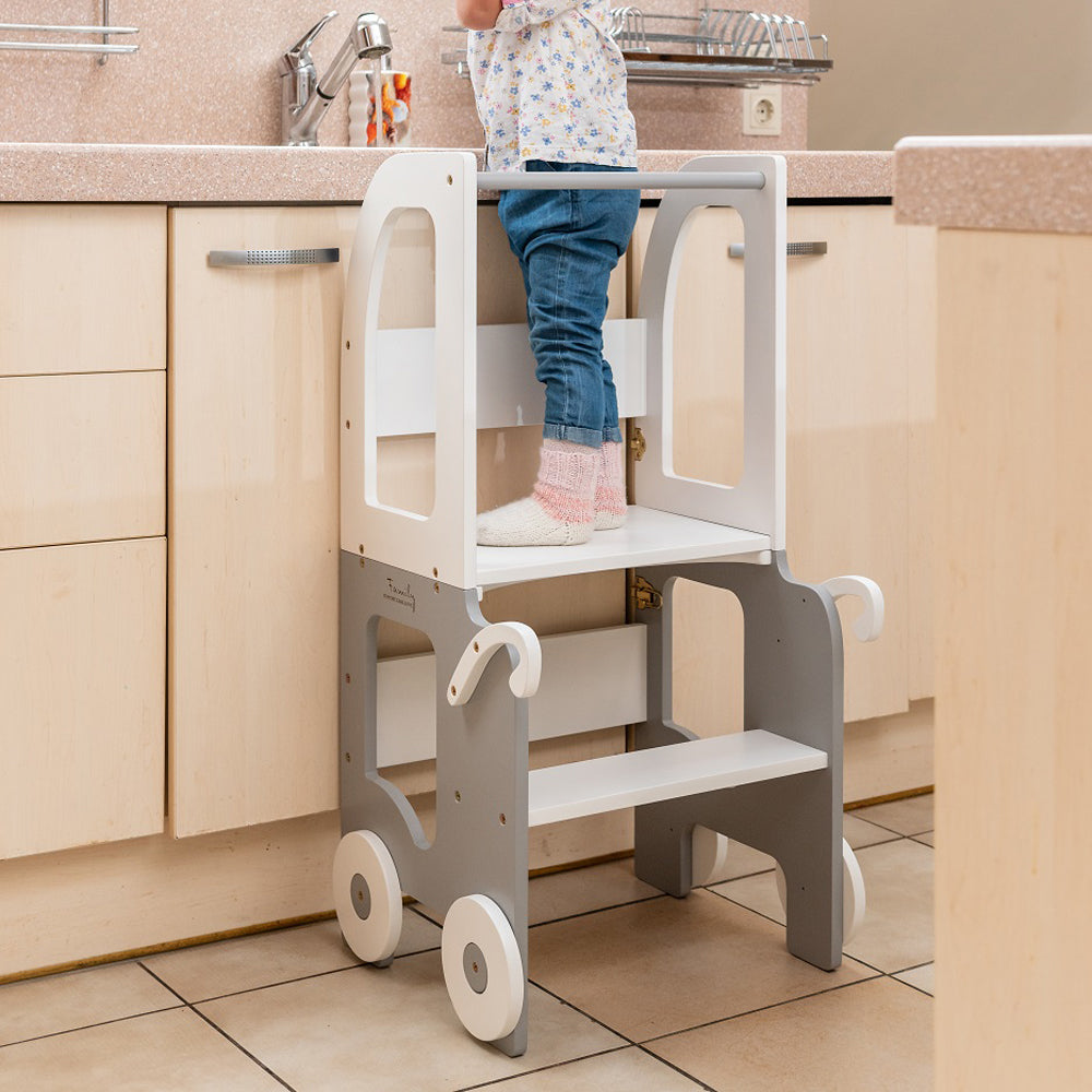 Dein Kind möchte immer mittendrin sein – beim Kochen, Basteln oder Spielen. Mit diesem 2in1 Lernturm im fröhlichen Auto-Look bekommt es nicht nur einen sicheren Platz auf Augenhöhe, sondern auch die Möglichkeit, spielerisch Selbstständigkeit zu lernen. Ob in der Küche oder im Kinderzimmer: Dieses Möbelstück wird schnell zum treuen Alltagsbegleiter.