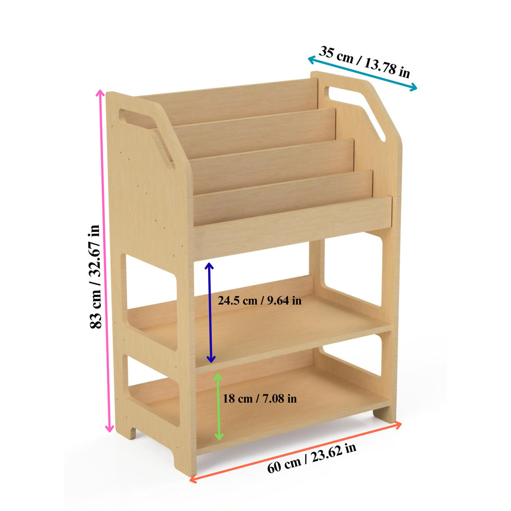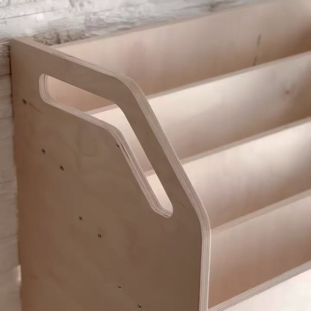 Gefertigt aus hochwertigem Birken-Sperrholz, überzeugt das Regal durch Stabilität, glatte Kanten und eine sichere, natürliche Oberfläche. Zwei offene Ablageflächen bieten Platz für Bücher und Spiele, während sich die oberen Einsteckfächer ideal für Bücher eignen. So entsteht im Kinderzimmer eine klare Struktur, die gleichzeitig zum Spielen und Entdecken einlädt.