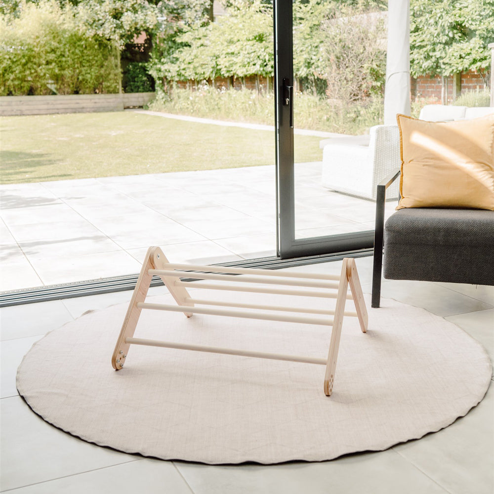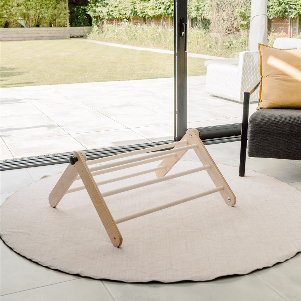 Ob hochklettern, sich durchschwingen oder eine kleine Höhle darunter bauen – das Kletterdreieck bietet unendliche Spielideen für neugierige Entdecker. Gefertigt aus stabilem Birkensperrholz, trägt es bis zu 100 kg und wächst so mühelos mit deinem Kind von den ersten Kletterversuchen bis ins Grundschulalter mit.