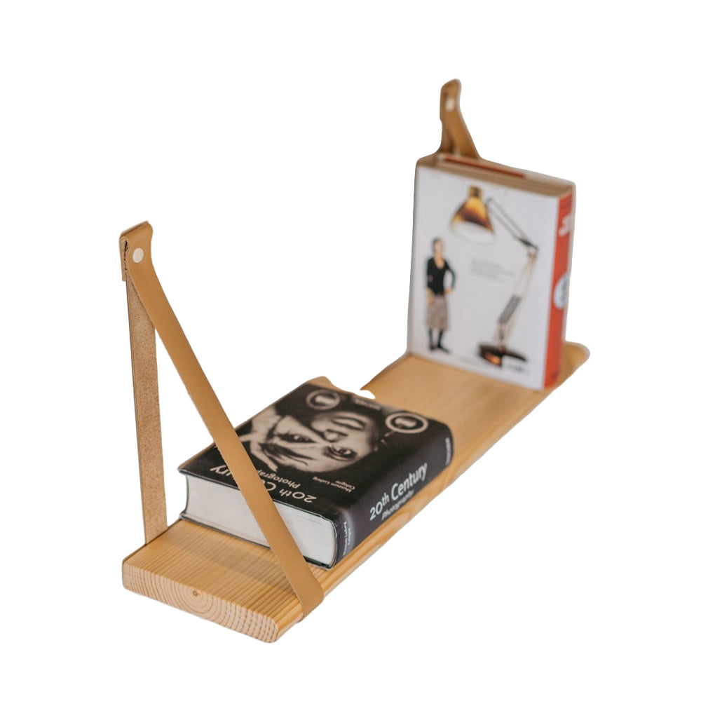 Bücher-Wandregal aus Holz, Esche massiv in cremeweiß, schlichtes Design für Kinderbücher in greifbarer Höhe und einfacher Wandmontage.