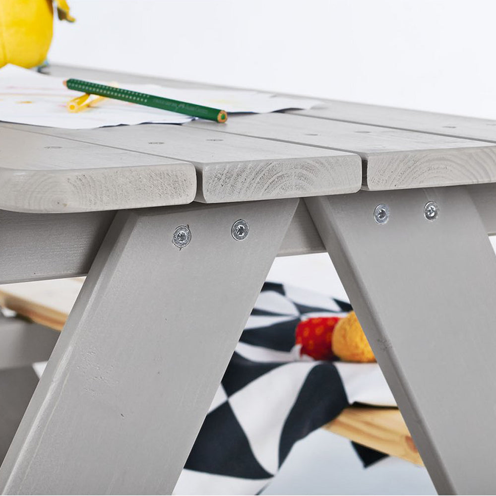 Sitzgarnitur für bis zu 4 Kinder Vollmassiv Nadelholz, Grau & Natur