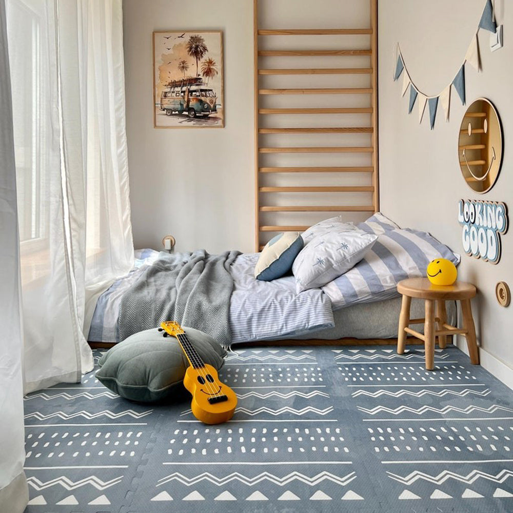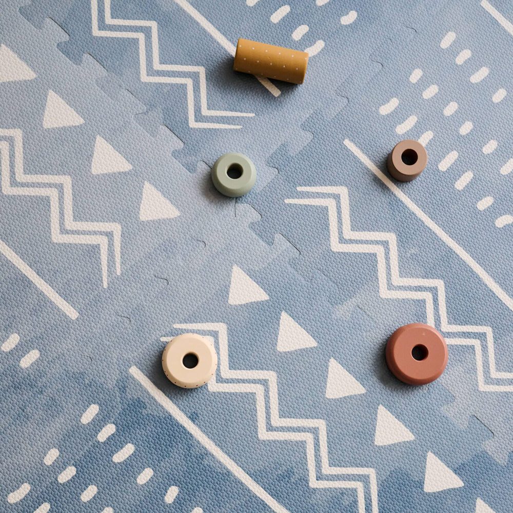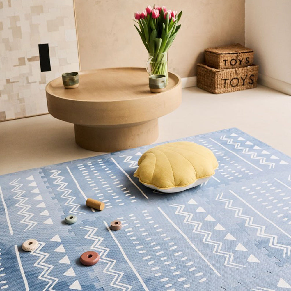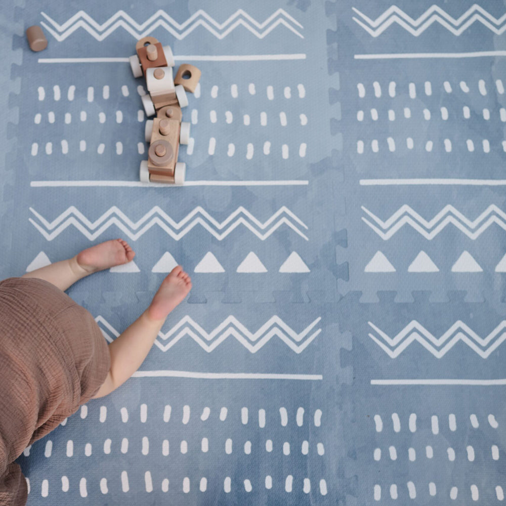 Das Boho-Muster in frischem Azurblau bringt einen Hauch von Leichtigkeit ins Kinderzimmer und fügt sich dank seines minimalistischen Stils harmonisch in dein Zuhause ein. Mit einer großzügigen Größe von 120 × 180 cm zusammengepuzzelt bietet die Matte jede Menge Platz zum Spielen und Wachsen. Dank des erweiterbaren Designs kannst du ganz einfach mehrere Sets miteinander kombinieren – perfekt für wachsende Spielwelten.