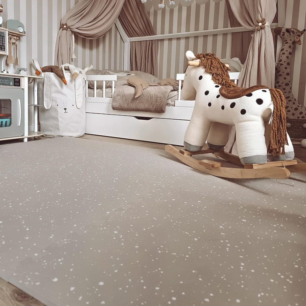 Kinderteppich mit hellem Stern in Grau und Creme, weich, pflegeleicht, ideal für das Kinderzimmer und zum Spielen geeignet.