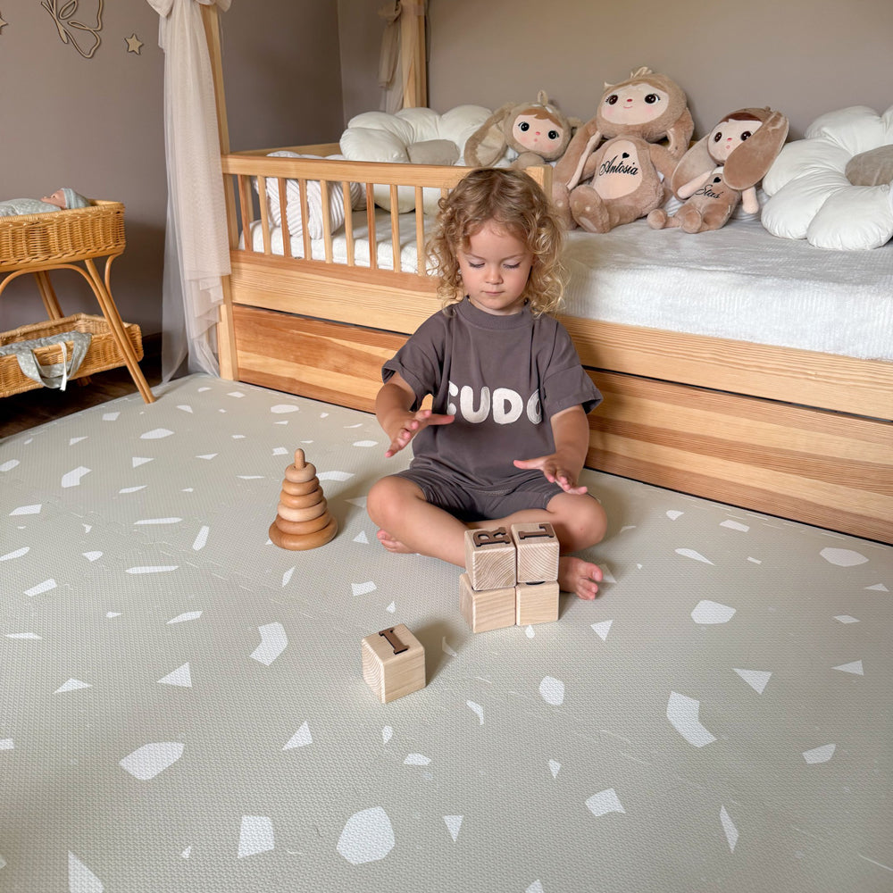 Teppich Kinderzimmer - was beachten? Es ist wichtig, dass der Teppich aus hypoallergenen und umweltfreundlichen Materialien besteht. Außerdem sollte der Teppich leicht zu reinigen sein, um mit den unvermeidlichen Verschmutzungen fertig zu werden, und eine weiche Oberfläche haben, die angenehm zum Spielen ist.