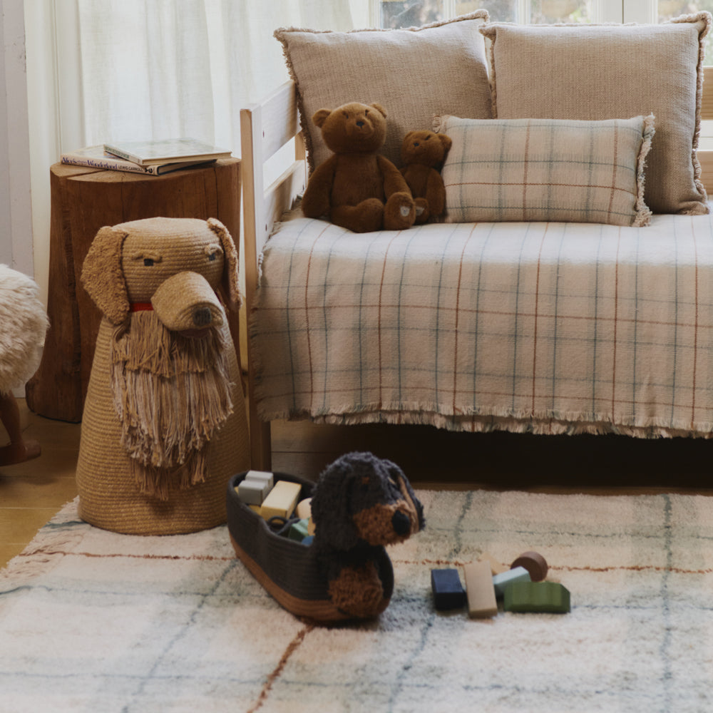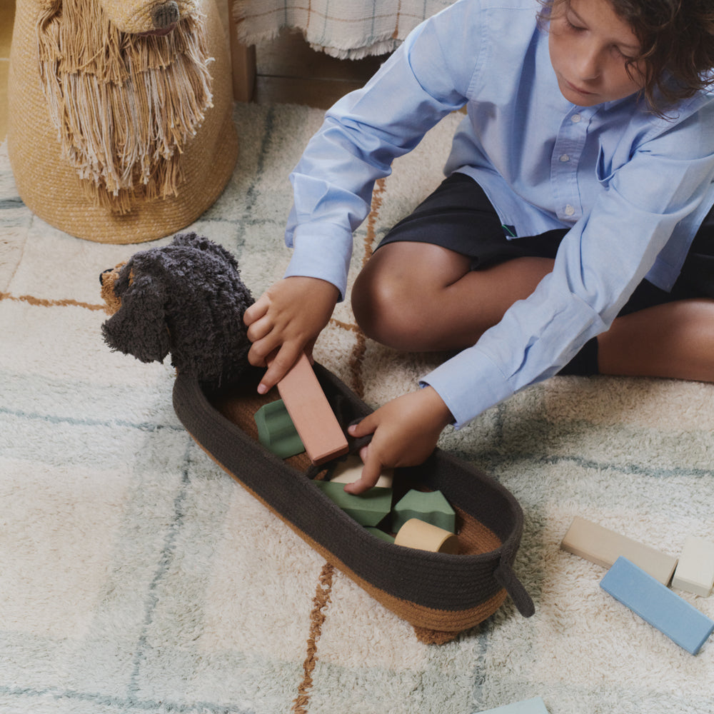 Ob Bausteine, Kuscheltiere oder kleine Schätze – Dackel Sparky hält alles sicher an seinem Platz. Die Kordel entlang der Seiten sorgt dafür, dass der Korb stabil bleibt, während der kleine Spielzeugknochen am Etikett für zusätzliche Verspieltheit sorgt. So wird Aufräumen zu einem spaßigen Ritual, das dein Kind motiviert und gleichzeitig Verantwortung fördert.