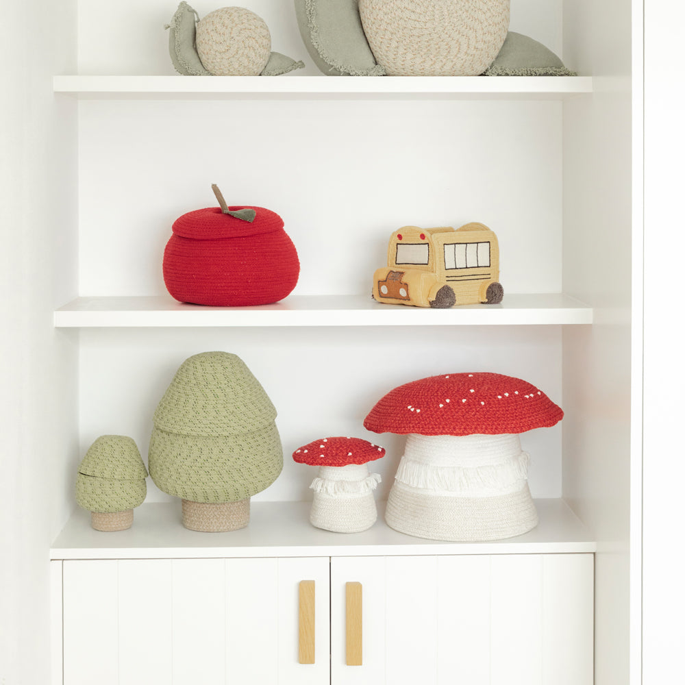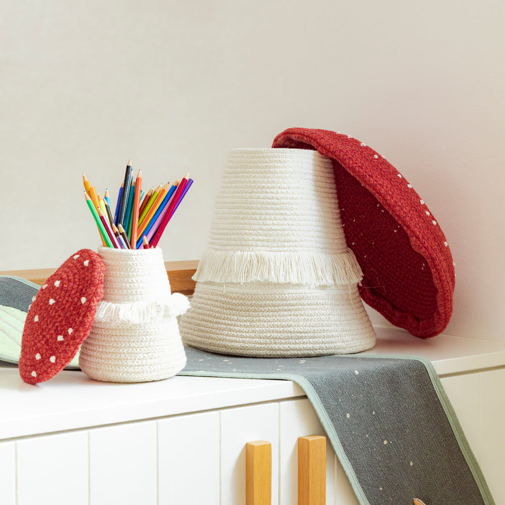 Ob Kuscheltiere, Bausteine oder kleine Schätze – der Pilzkorb bietet reichlich Platz, um alles sicher und stilvoll zu verstauen. Dein Kind wird ihn lieben, weil das Aufräumen so spielerisch leicht wird – fast wie ein kleines Abenteuer im Märchenwald. Ihr als Eltern genießt die Ordnung, euer Kind den Spaß – eine perfekte Kombination.