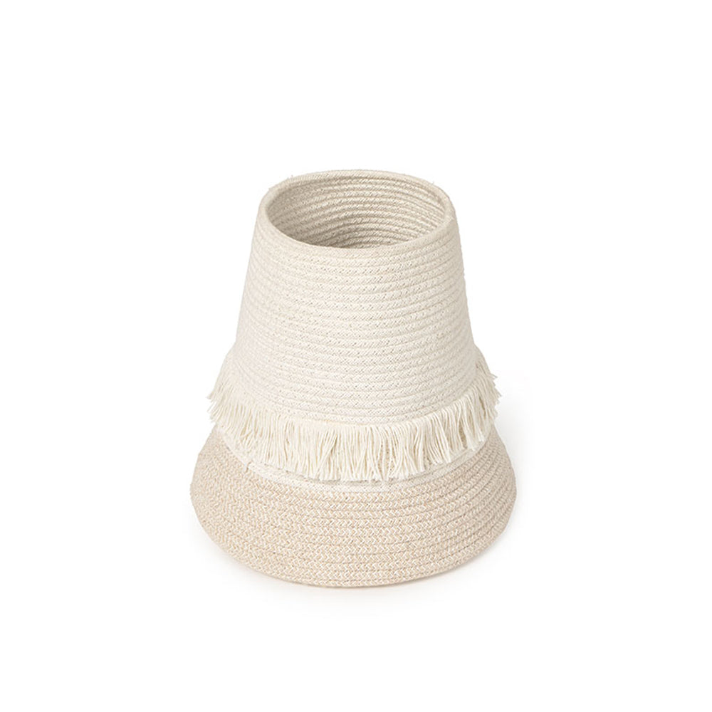Geflochten aus Baumwolle und recycelten PET-Fasern ist der Korb nicht nur stabil und langlebig, sondern auch umweltfreundlich. Bei kleinen Flecken reicht lauwarmes Wasser mit milder Seife, um ihn wieder zum Strahlen zu bringen. Ein einzigartiges Deko- und Aufbewahrungselement, das Kinderzimmer mit Herz und Stil bereichert.