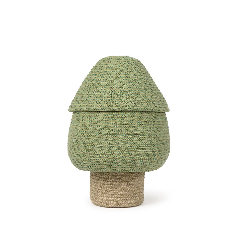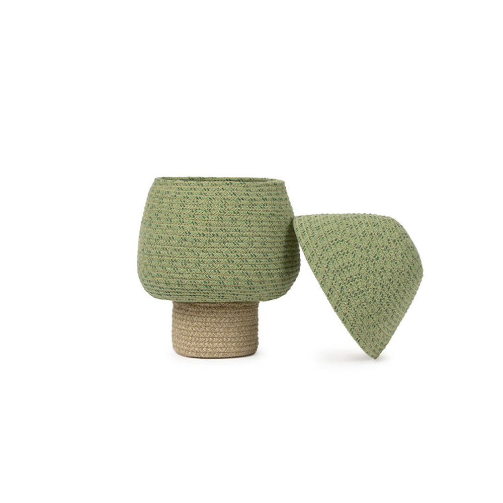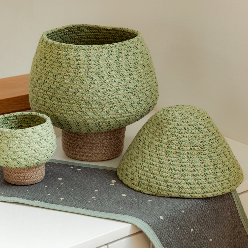 Gefertigt aus Baumwollkordeln mit recycelten PET-Fasern, vereint dieser Korb Langlebigkeit und Umweltbewusstsein. Jeder Baum ist ein Unikat, das durch seine Mischung aus Grüntönen natürliche Frische und Ruhe ins Zimmer bringt – ein funktionales Accessoire mit Herz und Charakter.