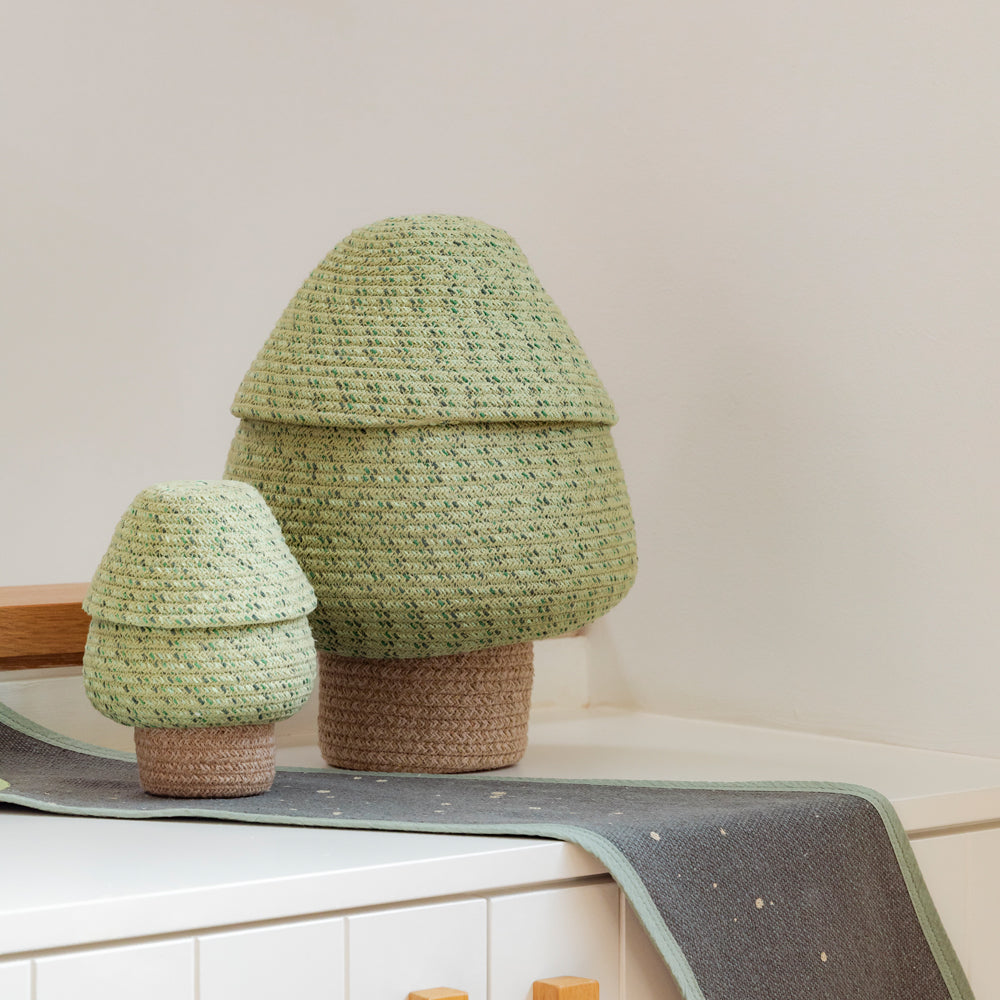 Dieser handgefertigte Aufbewahrungskorb in Baumform bringt Waldzauber und Natürlichkeit direkt in euer Zuhause. Mit seinen sanften Grüntönen und liebevollen Details wird er schnell zum Blickfang im Kinderzimmer – perfekt, um Fantasie und Spielfreude zu wecken.