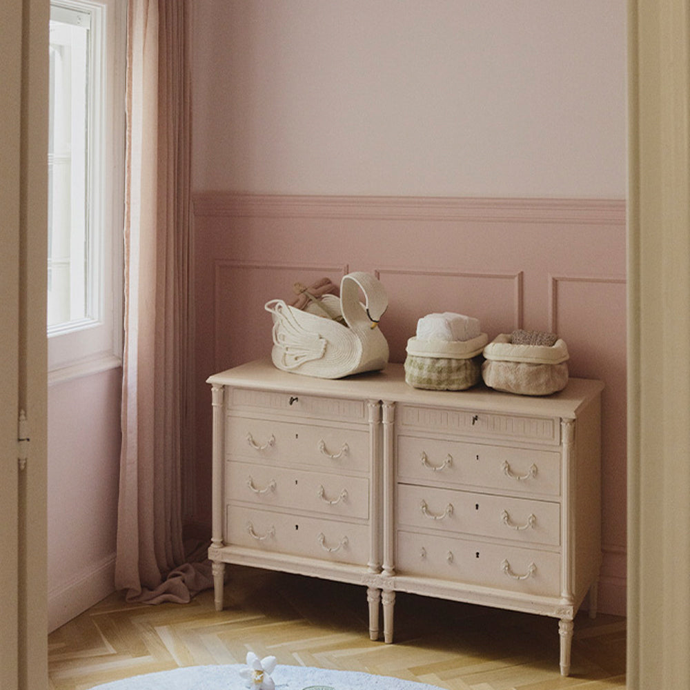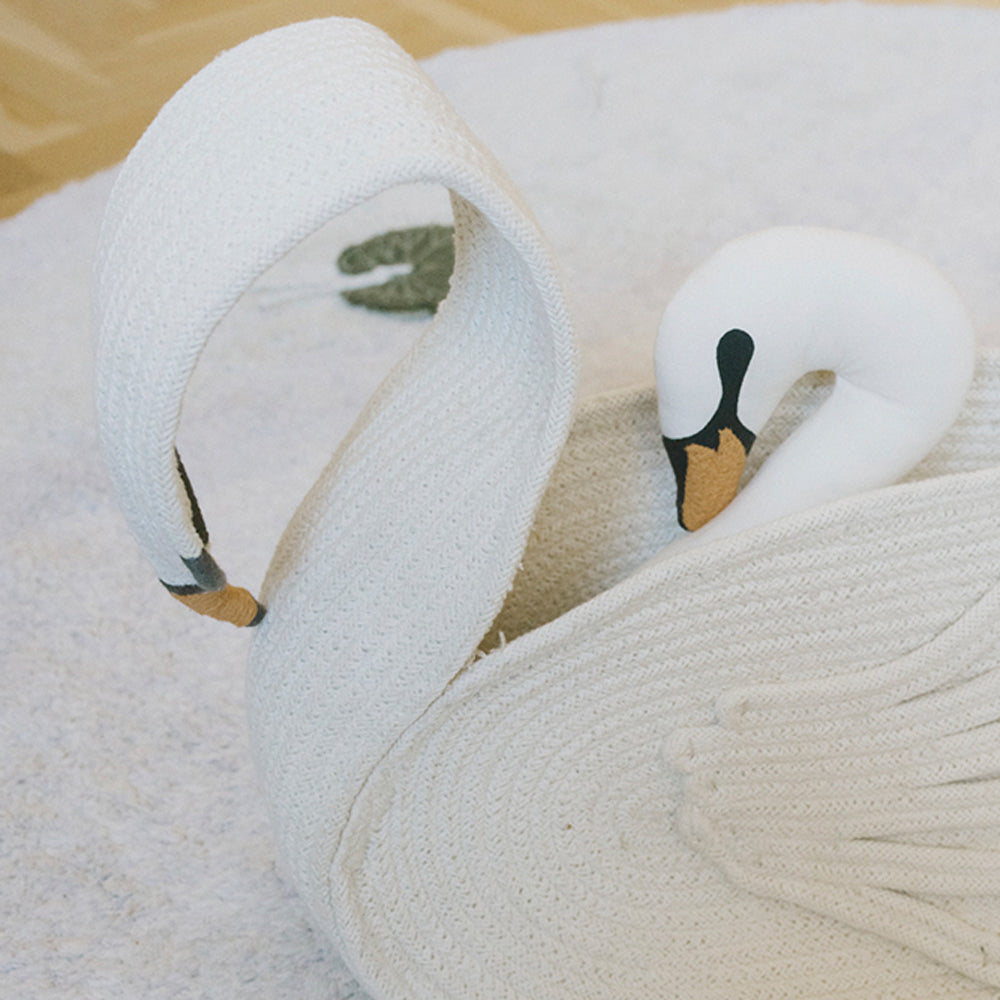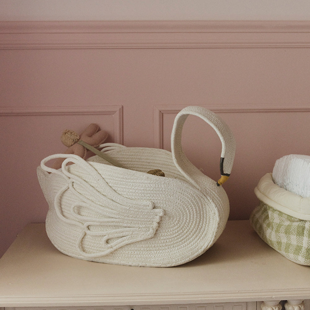 Mit dem handgefertigten Schwan-Aufbewahrungskorb schaffst du nicht nur Ordnung, sondern auch einen liebevollen Blickfang für das Kinderzimmer. Jeder Flügel ist sorgfältig gebunden und der Schnabel handbestickt – kleine Details, die deinem Kind zeigen, dass auch Aufräumen Spaß machen kann.