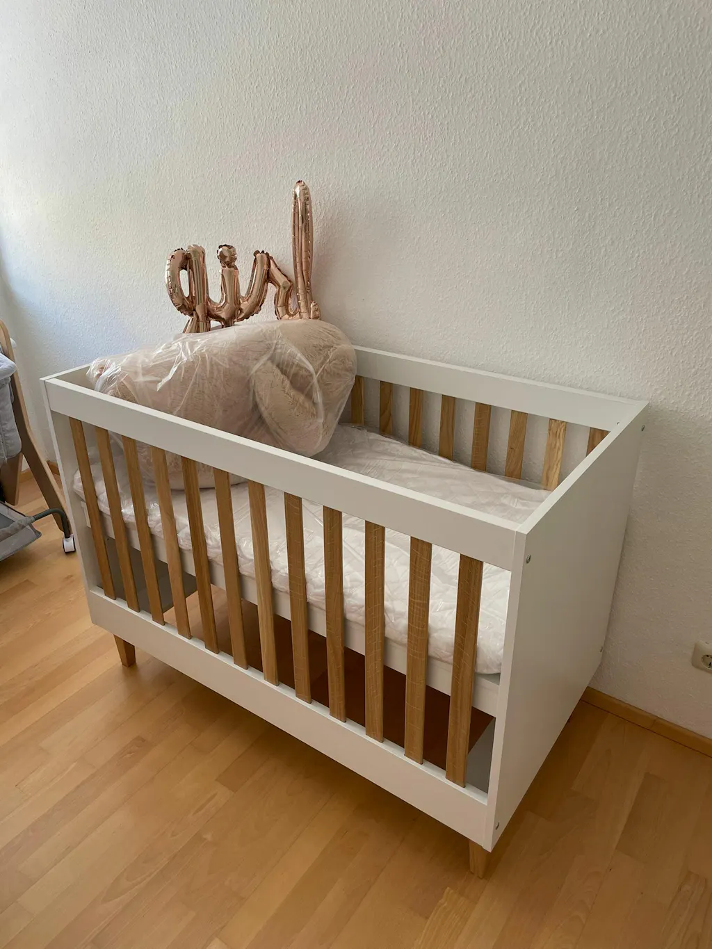 Das Elmo Babybett ist die perfekte Ergänzung zur restlichen Elmo-Kollektion. Das moderne und zeitlose Vintage Design mit einzelnen Holz Elementen spricht für sich und passt in jedes moderne Kinderzimmer.