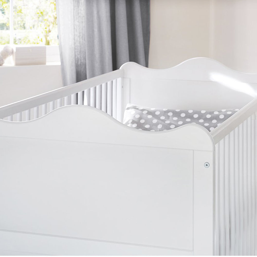Mit dem 2-teiligen Babyzimmer-Set Florentina schenkst du deinem Baby einen Ort, der Geborgenheit ausstrahlt und das tägliche Einschlafen zu einem liebevollen Ritual macht. Das elegante Kinderbett mit seinen geschwungenen Formen wächst von Anfang an mit – vom höhenverstellbaren Lattenrost bis hin zum Juniorbett für die ersten eigenen Abenteuer. Dank der drei Schlupfsprossen kann dein Kind schon bald selbstständig hinein- und herausklettern, ohne dass du auf Sicherheit verzichten musst.
