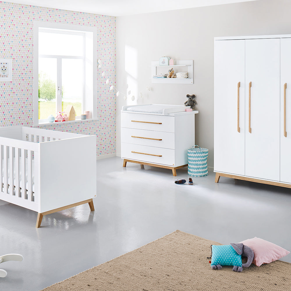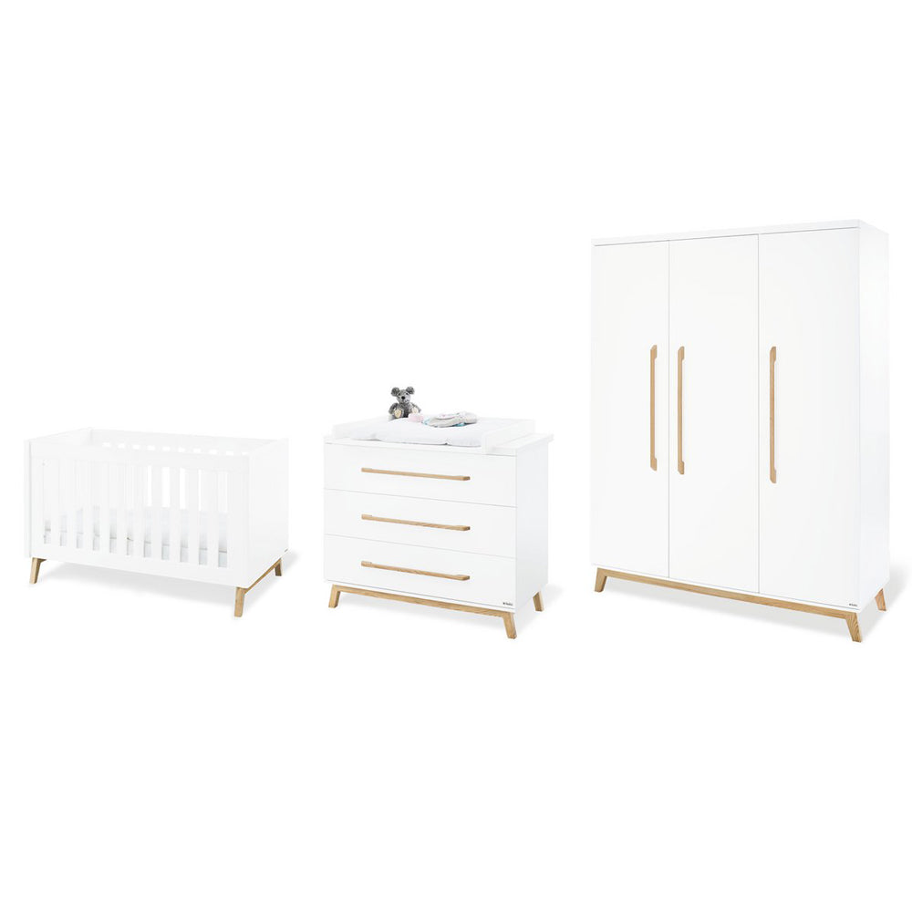 Babyzimmer-Set Riva 3-teilig - mitwachsendes Baby-/Kinderbett, Kommode & Kleiderschrank