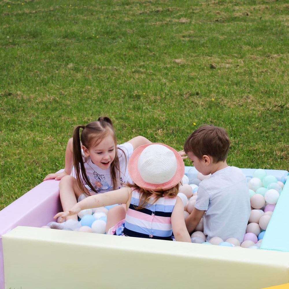 Tauche dein Kind in ein weiches, sicheres Abenteuer! Das quadratische Bällebad bietet eine gepolsterte Umgebung, in der Babys und Kleinkinder ab 1 Jahr gefahrlos klettern, krabbeln und spielen können. Der niedrige Einstieg macht es einfach, selbstständig hinein- und herauszukommen – für grenzenlose Entdeckungsmomente.