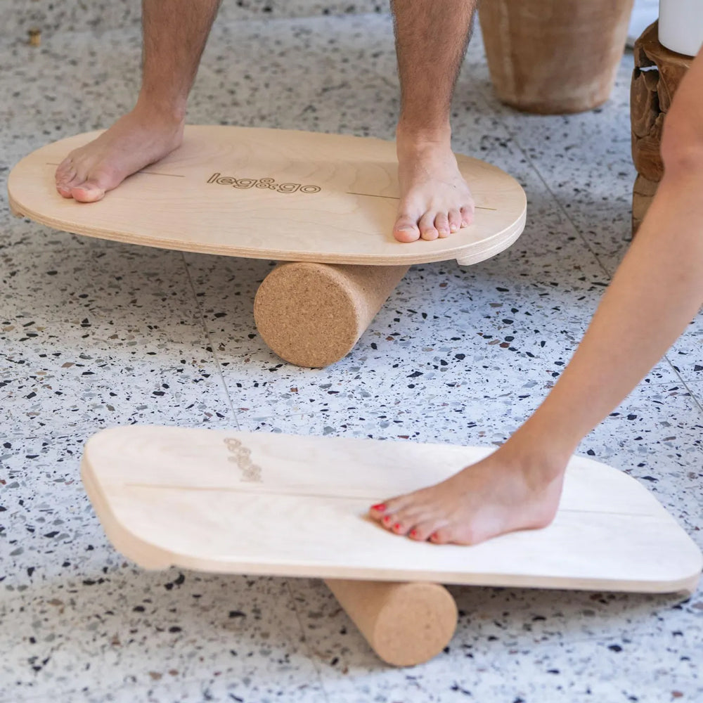 Gefertigt aus robustem Birkensperrholz und einer stabilen Korkrolle, vereint dieses Balance Board Sicherheit mit natürlicher Qualität. Die abgerundete rechteckige Form sorgt für einen sanften Bewegungsfluss, der ideal für dein Kind und euch als Erwachsene ist. Durch die angenehme Oberfläche bietet das Board sicheren Halt – egal, ob barfuß, in Socken oder mit Schuhen – und macht jede Balanceübung zu einem sicheren Abenteuer.