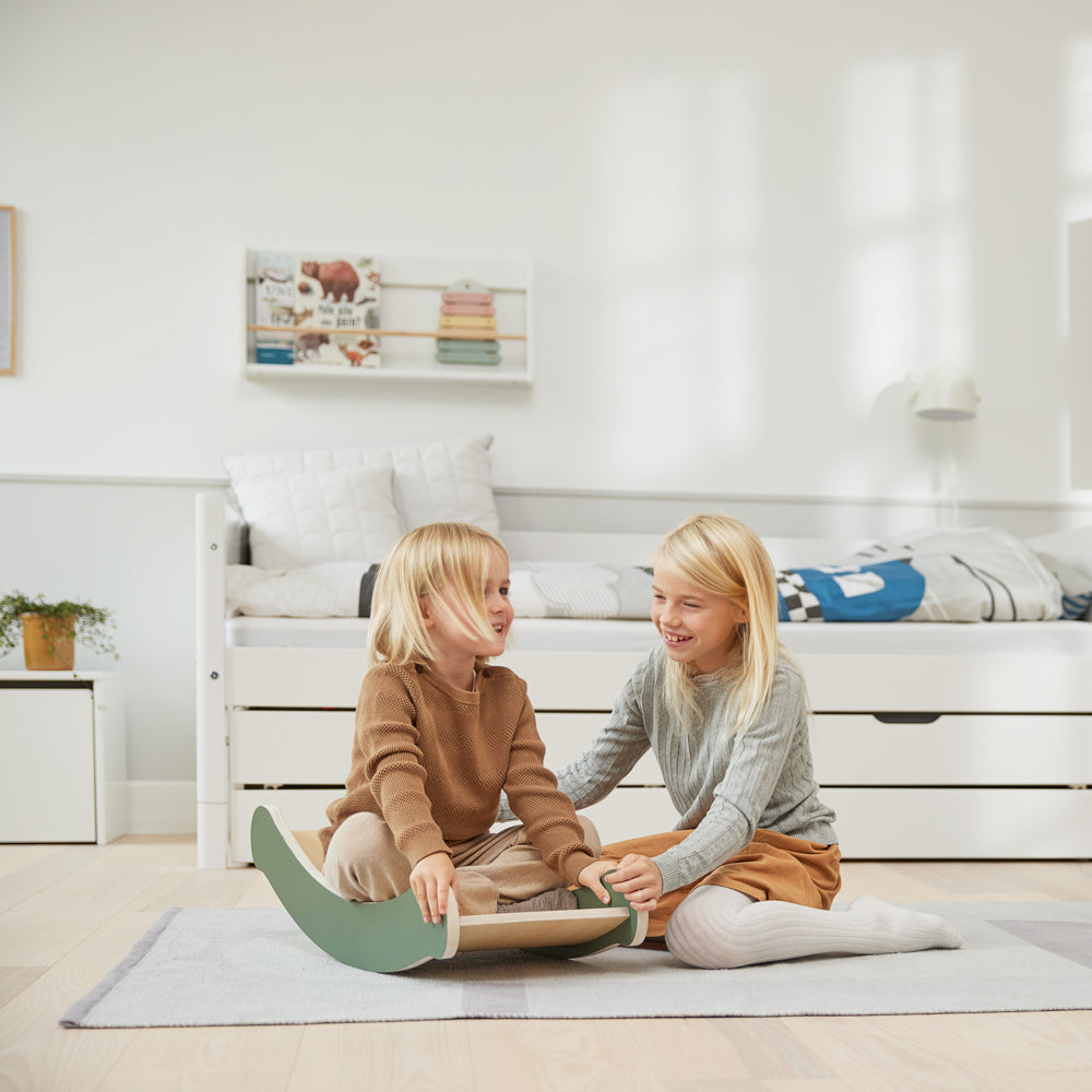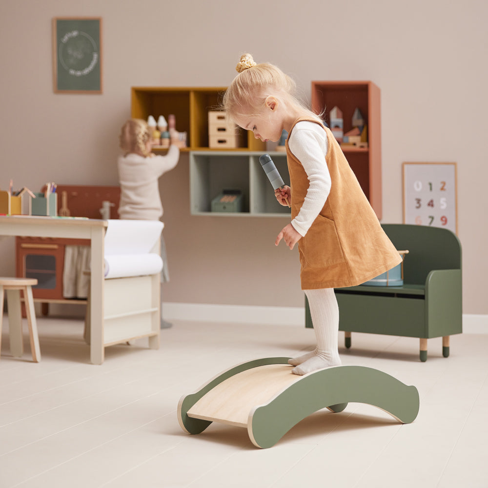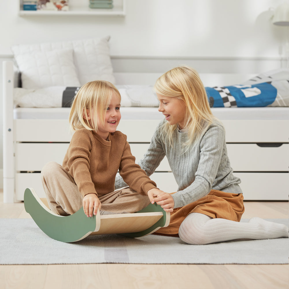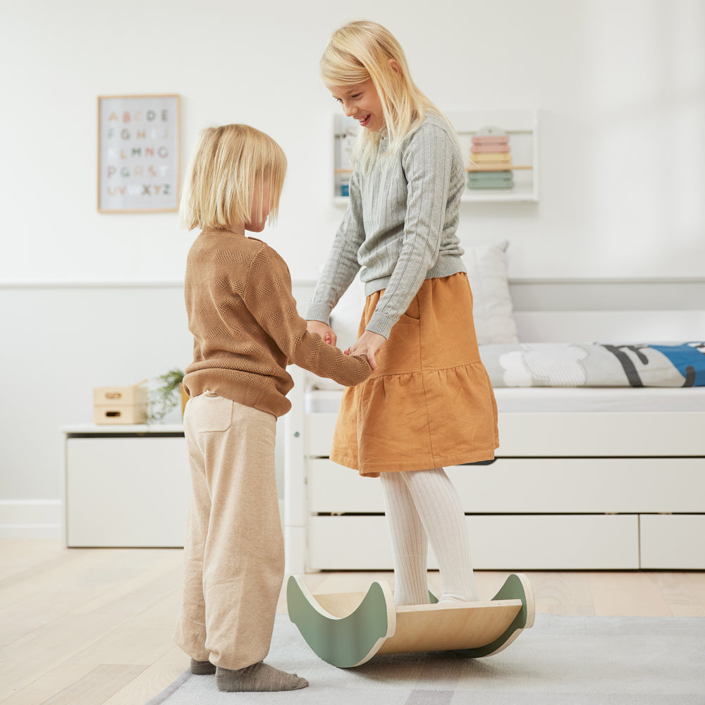In der einen Sekunde ein Tunnel für das Lieblingsauto, in der nächsten ein Boot auf hoher See oder ein bequemer Lesesessel – das Balance Board weckt die Fantasie und lädt zum freien Spiel ein. Ganz nebenbei wird die motorische Entwicklung gefördert, ohne dass es sich wie „Übung“ anfühlt.