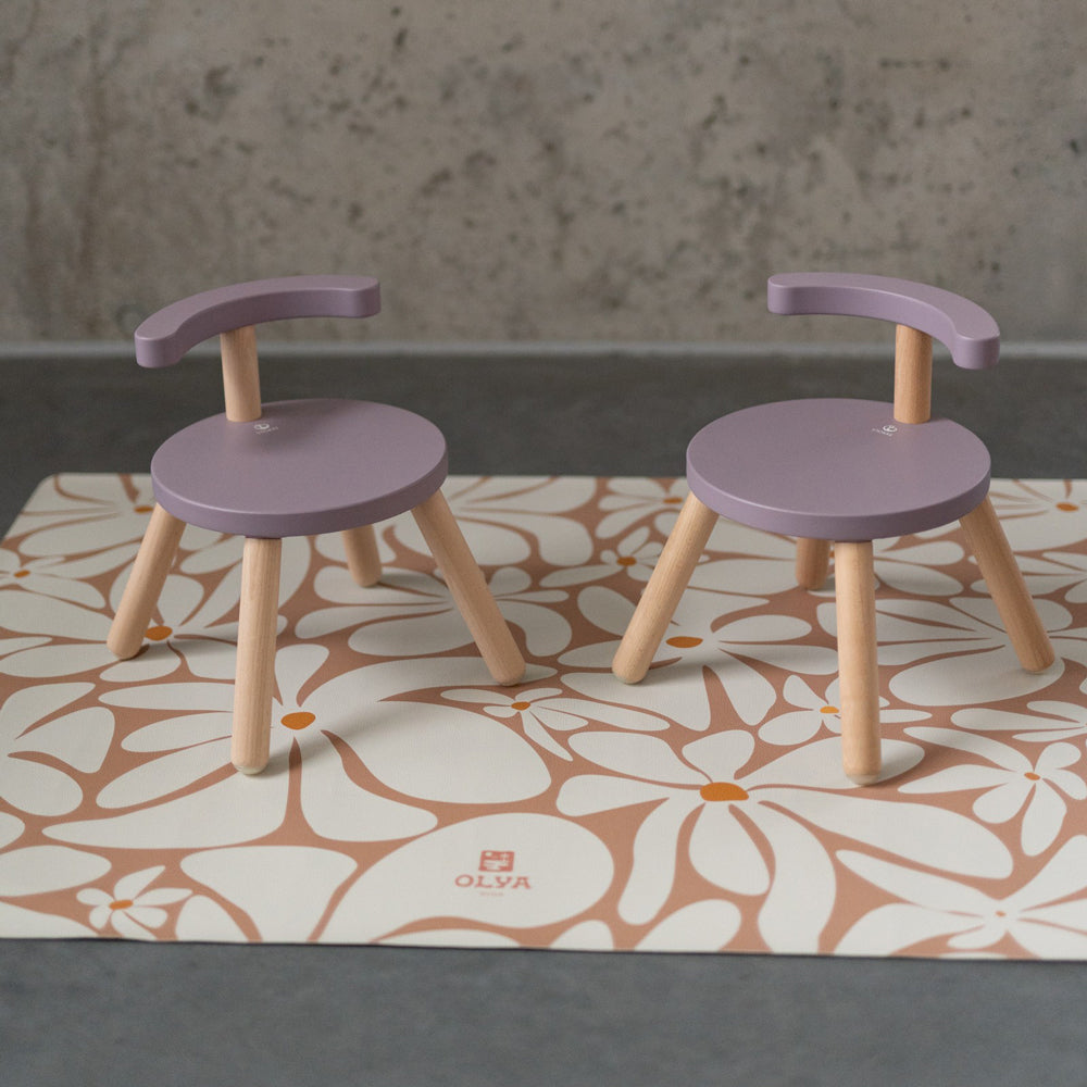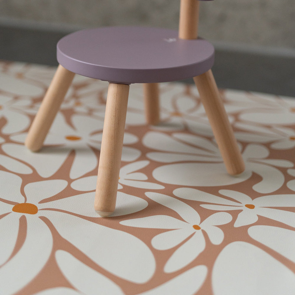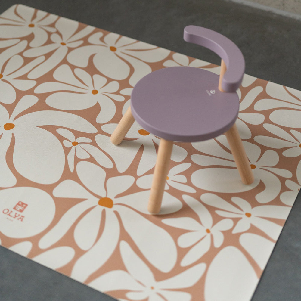 Mit der Schutzmatte in erdigen Tönen und mit Gänseblümchendruck schenkst du deinem Kind einen sicheren, warmen Platz, an dem es ganz frei kleckern, probieren und spielen darf. Beim Füttern schützt die Matte deinen Boden zuverlässig, während dein Kind entspannt seine ersten Essabenteuer erlebt. So wird jede Mahlzeit zu einem liebevollen Moment, in dem ihr euch auf das Wesentliche konzentrieren könnt – aufeinander.