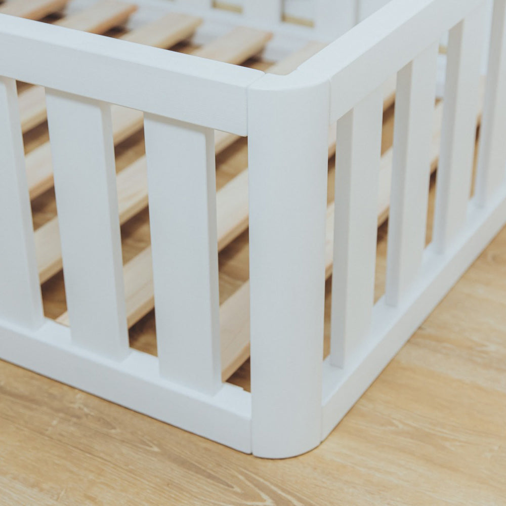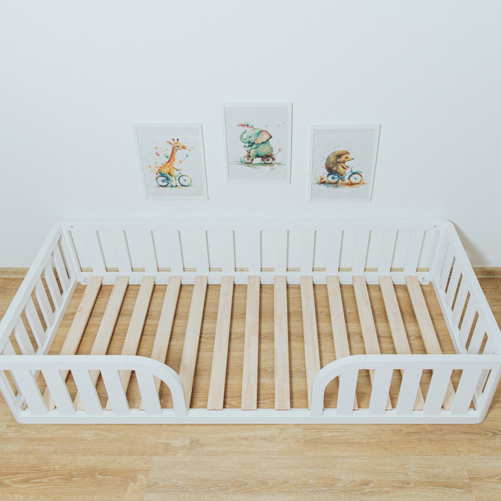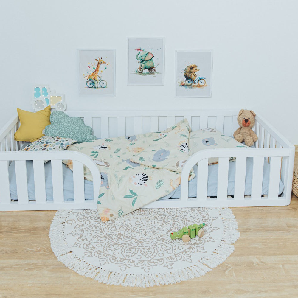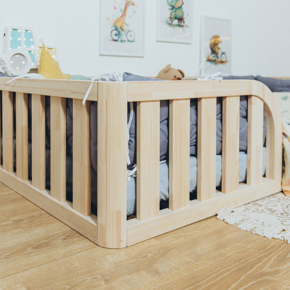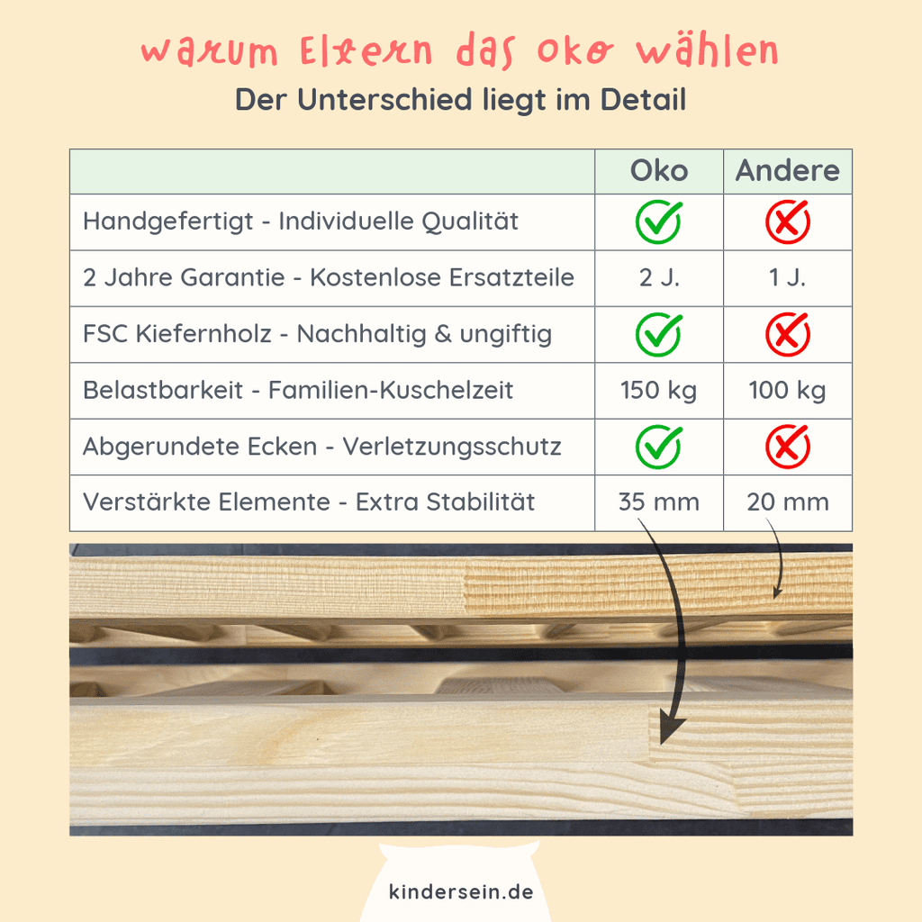 Das Bodenbett Oko ist nicht nur ein sicheres Bodenbett, sondern auch ein Ort, an dem Fantasie und Alltag zusammentreffen. Die durchdachte Bauweise mit abgerundeten Kanten bietet Komfort und Sicherheit beim Spielen, Schlafen und Entdecken. Und wenn du besondere Wünsche hast – zum Beispiel ein höheres Geländer oder Sondermaße – helfen wir dir gern mit einer maßgeschneiderten Lösung weiter.
