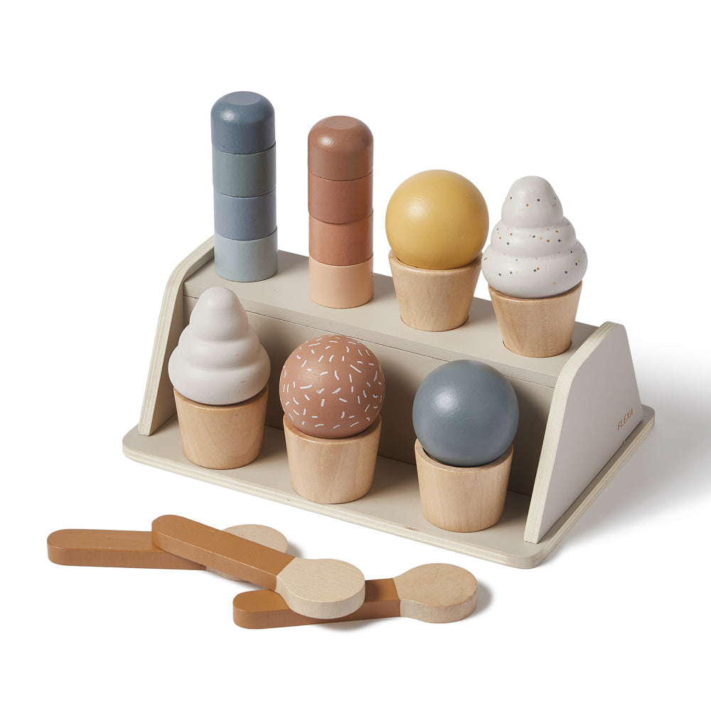 Eiscreme-Spielset aus Holz für Kinderküchen & Kaufladen, 22 Teile