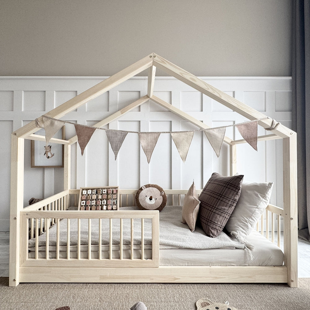 Durch die extra niedrigen 1-cm-Füße kann dein Kind selbstständig ins Bett steigen, was Selbstvertrauen fördert und Abendrituale entspannt. Ob Vorlesen, Kuscheln oder Einschlafen – das Hausbett Alto begleitet euch zuverlässig durch jeden Tag und jede Nacht.