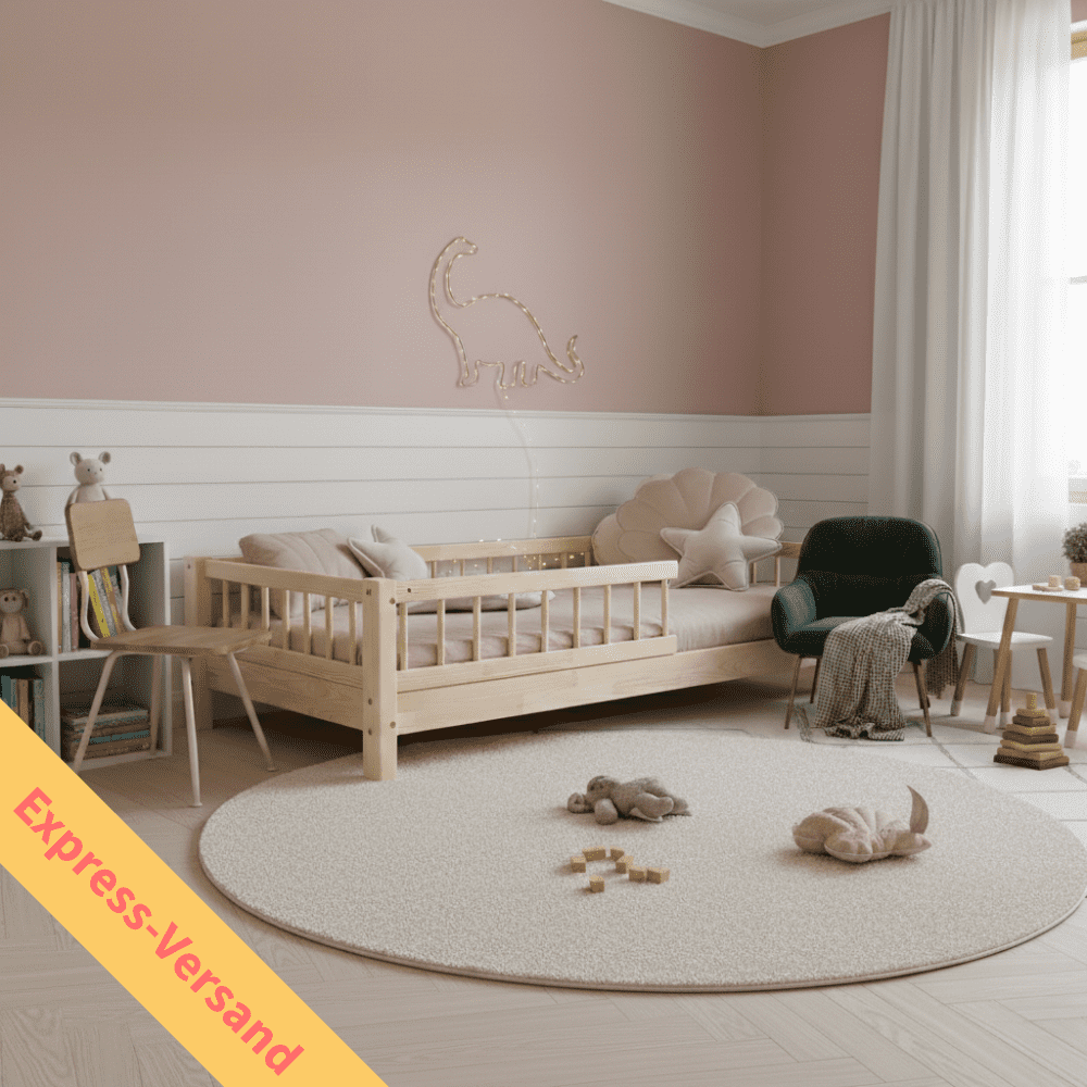 Das Express Kinderbett Basic Bello schenkt deinem Kind einen ruhigen, geschützten Schlafplatz, an dem es sich rundum geborgen fühlt. Der integrierte Rausfallschutz sorgt für Sicherheit in der Nacht und lässt dein Kind entspannt einschlafen – und dich gleich mit.