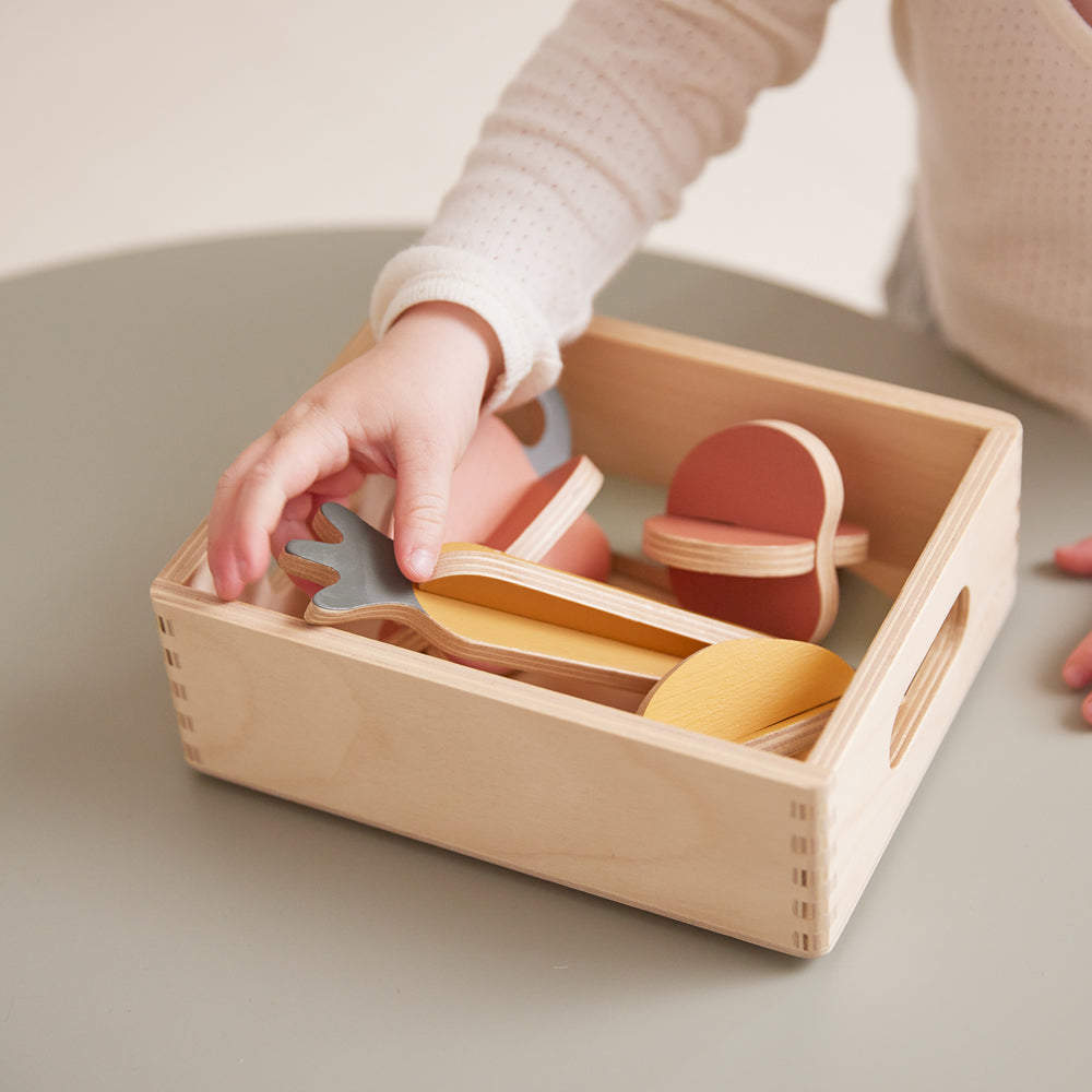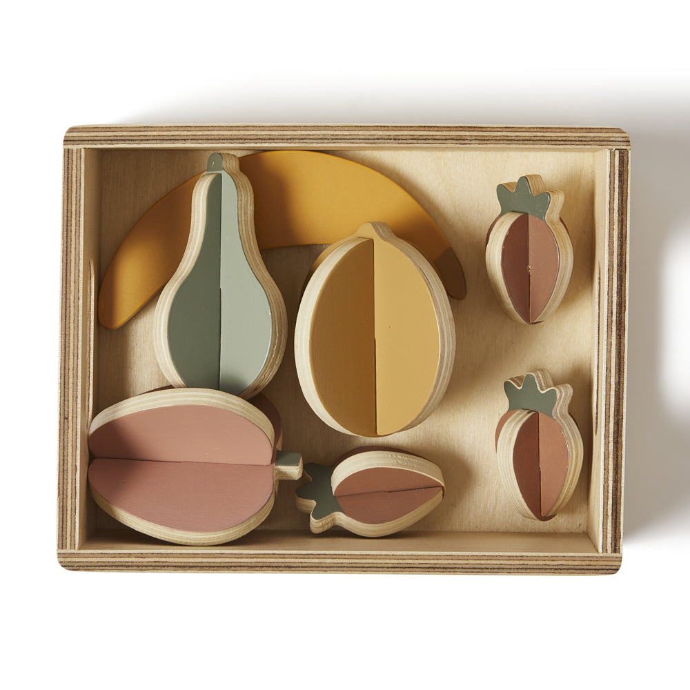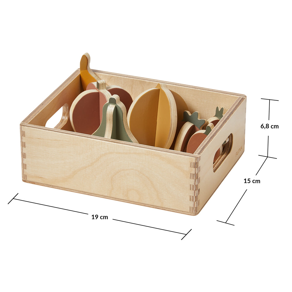 Nach dem Spielen ist vor dem Aufräumen – und genau das klappt mit diesem Set kinderleicht! In der stabilen Holzkiste finden alle acht bunten Fruchtteile ihren festen Platz, was nicht nur für Ordnung sorgt, sondern deinem Kind auch hilft, Strukturen zu verstehen. Ganz gleich, ob das Obst im Kaufladen verkauft, in der Spielküche verarbeitet oder für ein Picknick vorbereitet wird – mit diesem Set wird jeder Alltag zu einem fantasievollen Abenteuer. Und das Beste: Die Kiste lässt sich mühelos im Regal verstauen oder zum nächsten Spielort mitnehmen.