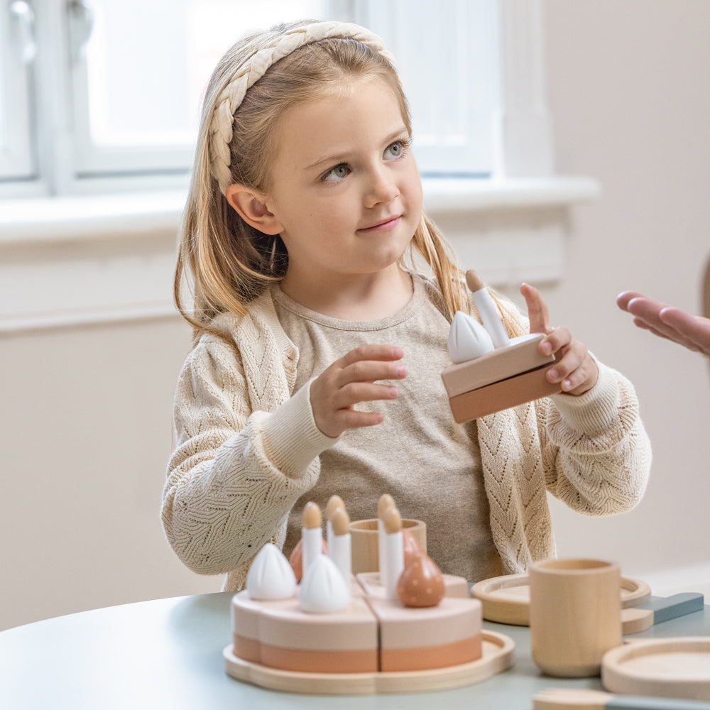 Beim Feiern und Teilen trainiert dein Kind nicht nur Feinmotorik und Kreativität, sondern erlebt auch, wie schön es ist, anderen eine Freude zu machen. Das gemeinsame „Feiern“ fördert Empathie, soziale Fähigkeiten und die Lust am Miteinander – ganz spielerisch und mit jeder Menge Spaß. Ob im Rollenspiel mit Freunden oder im Alleinspiel mit den liebsten Stofftieren: Der Holzgeburtstagskuchen bringt kleine Augen zum Leuchten.