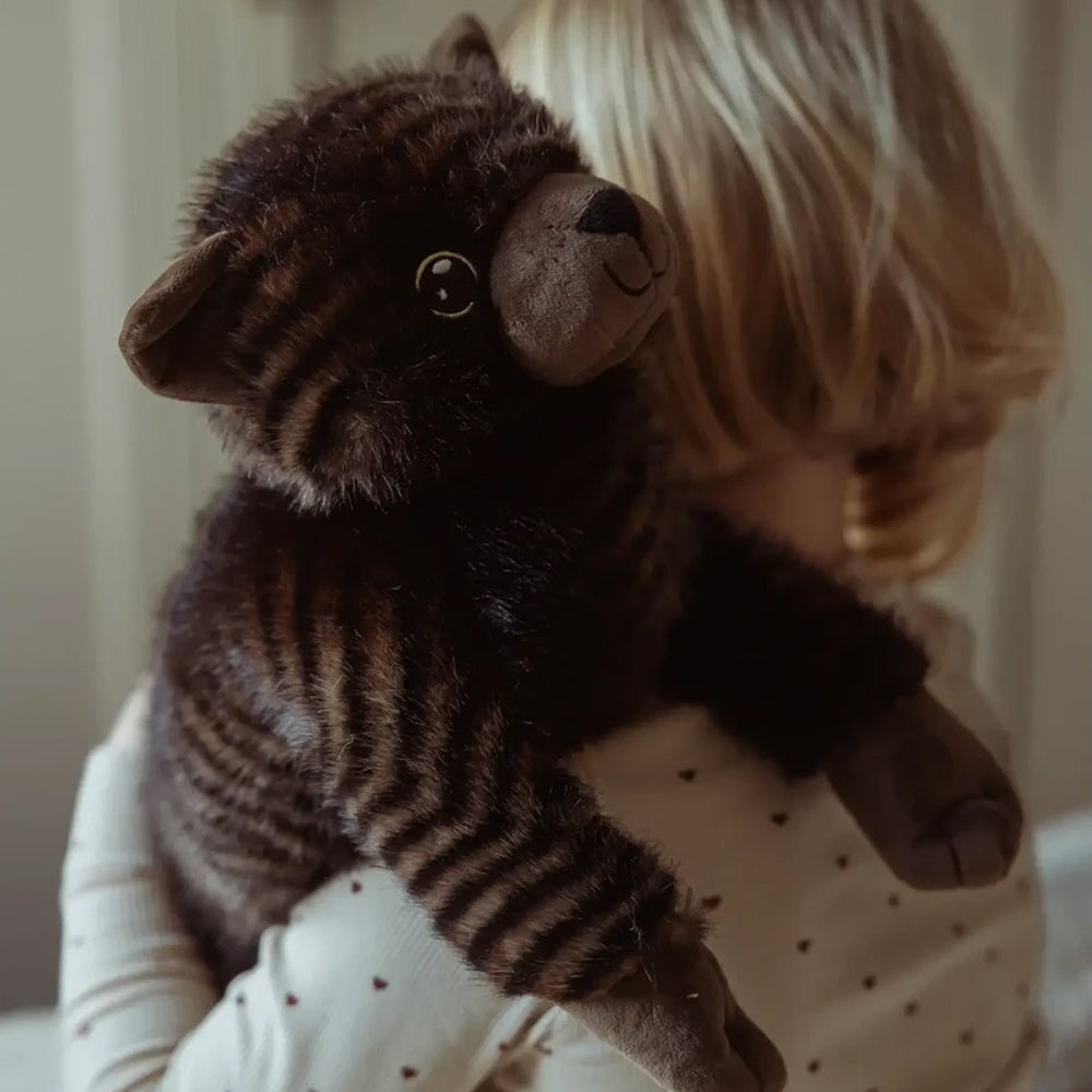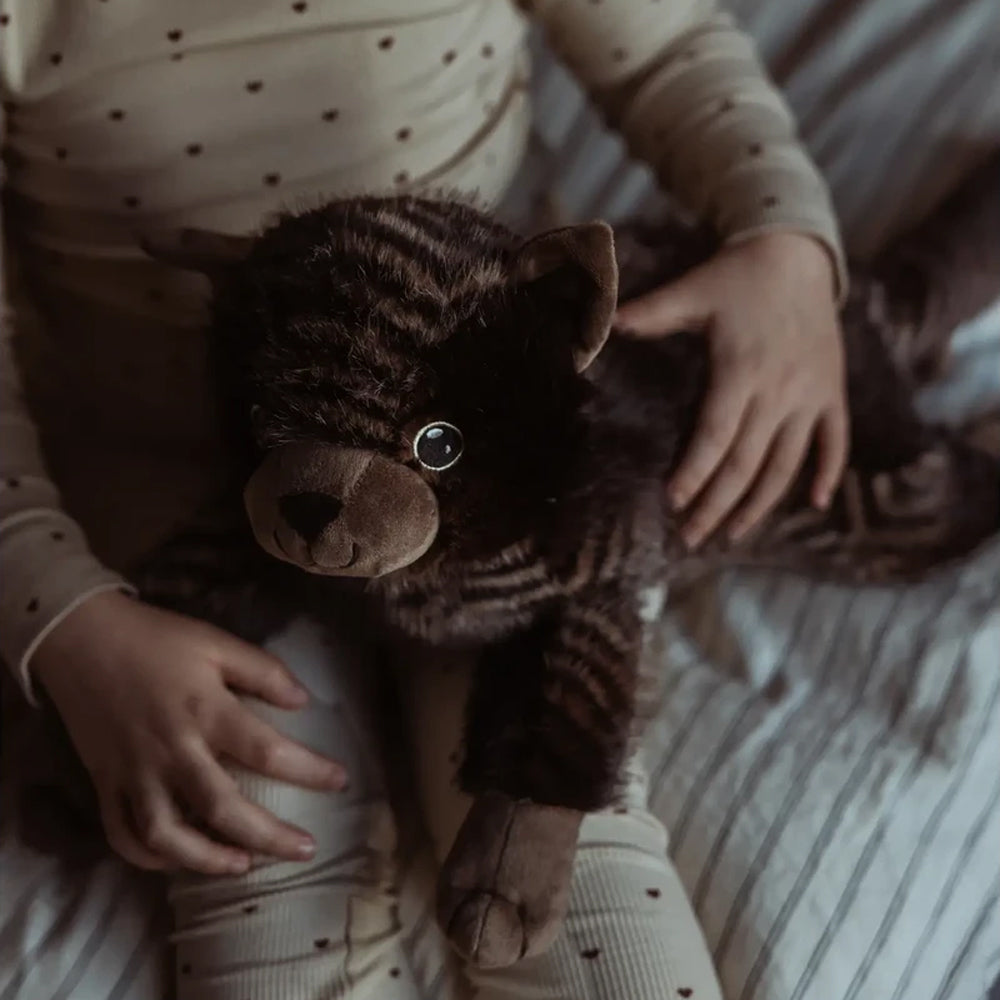 Diese 1,2 kg schwere Plüschkatze schenkt deinem Kind ein beruhigendes, stützendes Gefühl – fast wie eine echte Umarmung. Mit ihren weichen grauen Streifen, dem samtigen schwarzen Fell und den lebensechten Augen lädt sie dazu ein, sich anzulehnen, tief durchzuatmen und Geborgenheit zu spüren.