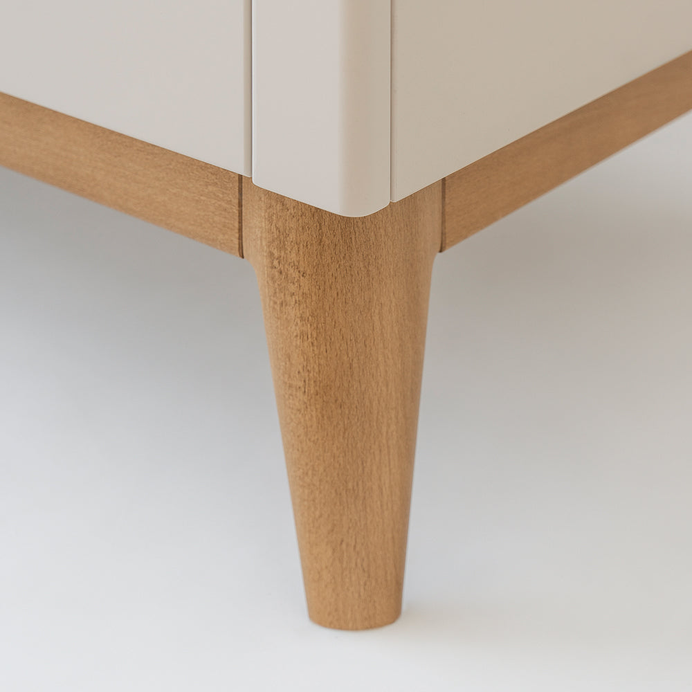Die Kinderkommode Seth wird schnell zum Zuhause für all die Dinge, die deinem Kind wichtig sind – vom ersten Body bis zum Lieblingskuscheltier. Die weichen Formen, der warme Champagner-Ton und die abgerundeten Ecken schaffen eine ruhige, sichere Umgebung, in der sich dein Kind geborgen fühlt.
