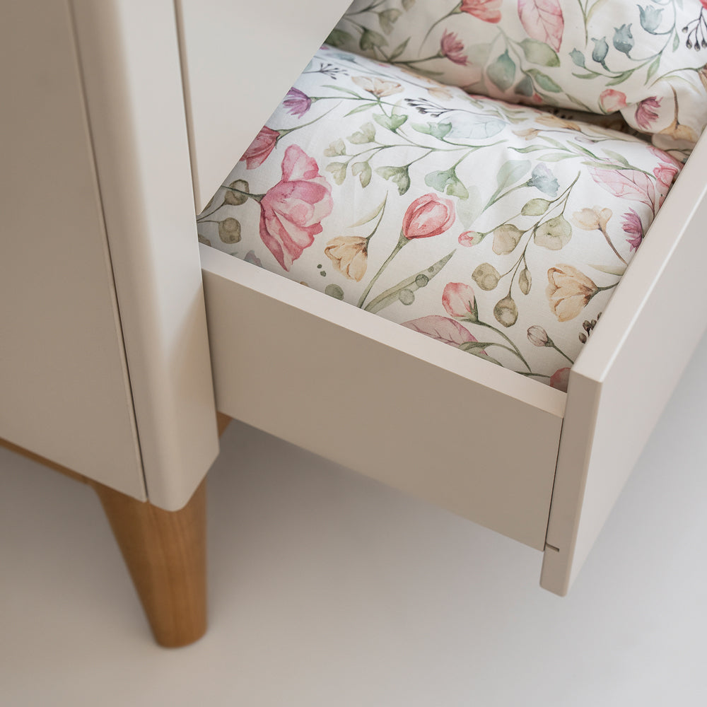 Ob beim Wickeln, Anziehen oder später beim eigenständigen Verstauen von Kleidung: Die Kommode Seth passt sich eurem Familienalltag an. Für dich bedeutet das mehr Ordnung und Ruhe. Für dein Kind ein vertrautes Möbelstück, das jeden Entwicklungsschritt liebevoll begleitet.