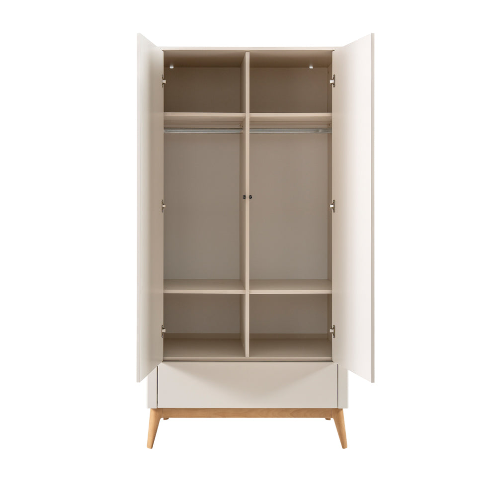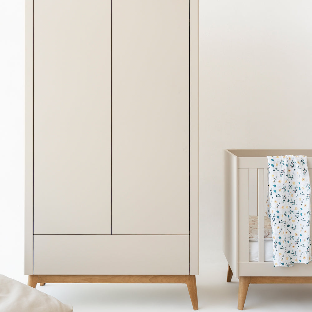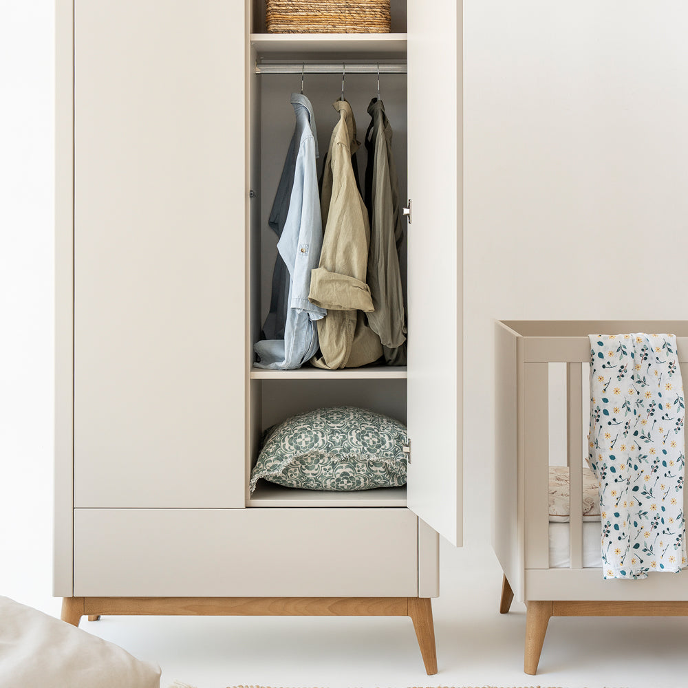 Der 2-türige Kleiderschrank Seth schenkt deinem Kind einen festen Platz für Kleidung, Jacken und all die Dinge, die im Alltag wichtig sind. Der warme Champagner-Ton, die sanften Rundungen und das leise Push-to-Open-System schaffen eine ruhige, sichere Umgebung, in der sich dein Kind wohlfühlt.