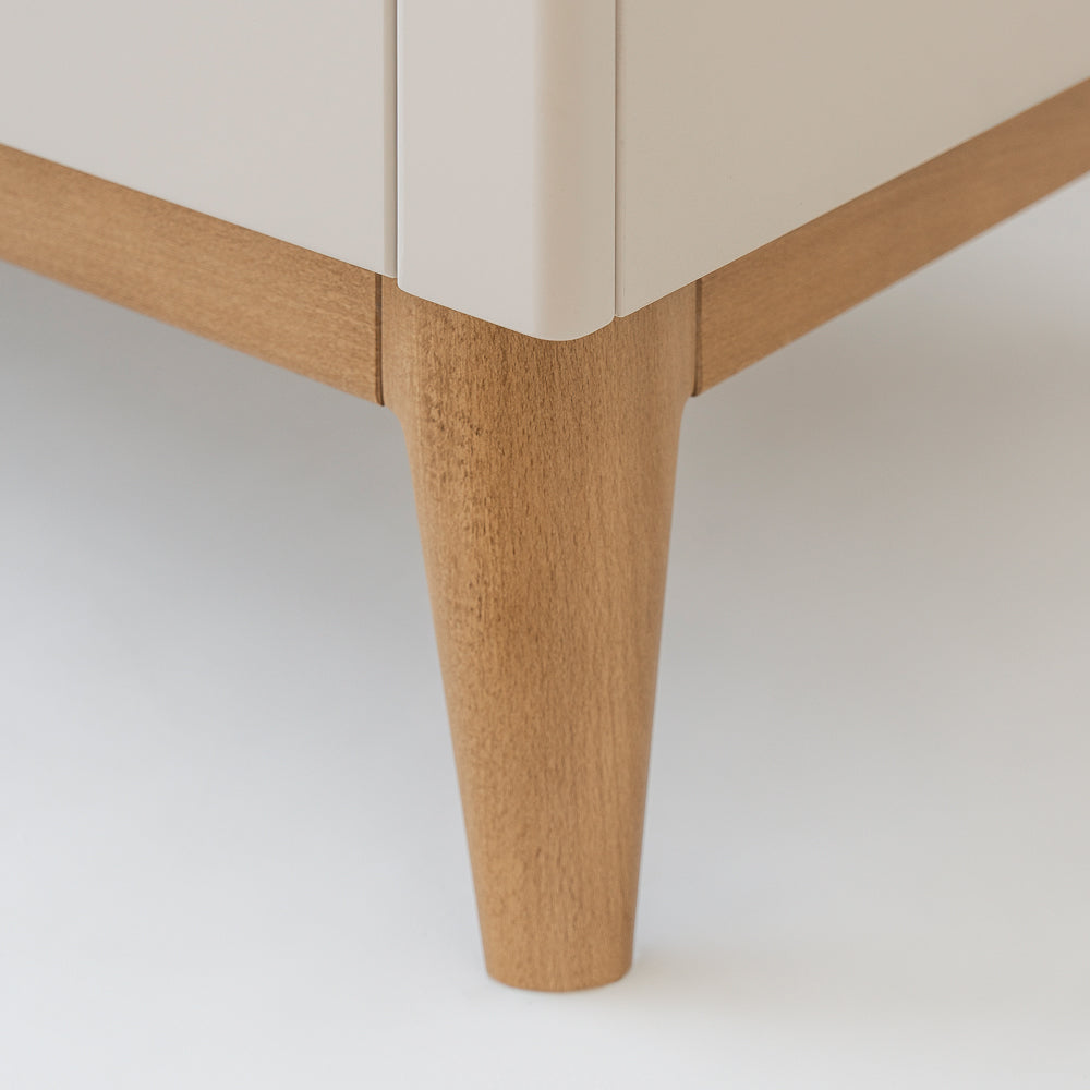 Massives Buchenholz, ein stabiler Kiefernholzrahmen und das skandinavische Design verbinden Langlebigkeit mit zeitloser Eleganz. Die Beinhöhe schafft Platz für Reinigung oder Saugroboter, während das warme Champagner-Finish das Kinderzimmer in einen ruhigen, harmonischen Wohlfühlort verwandelt.