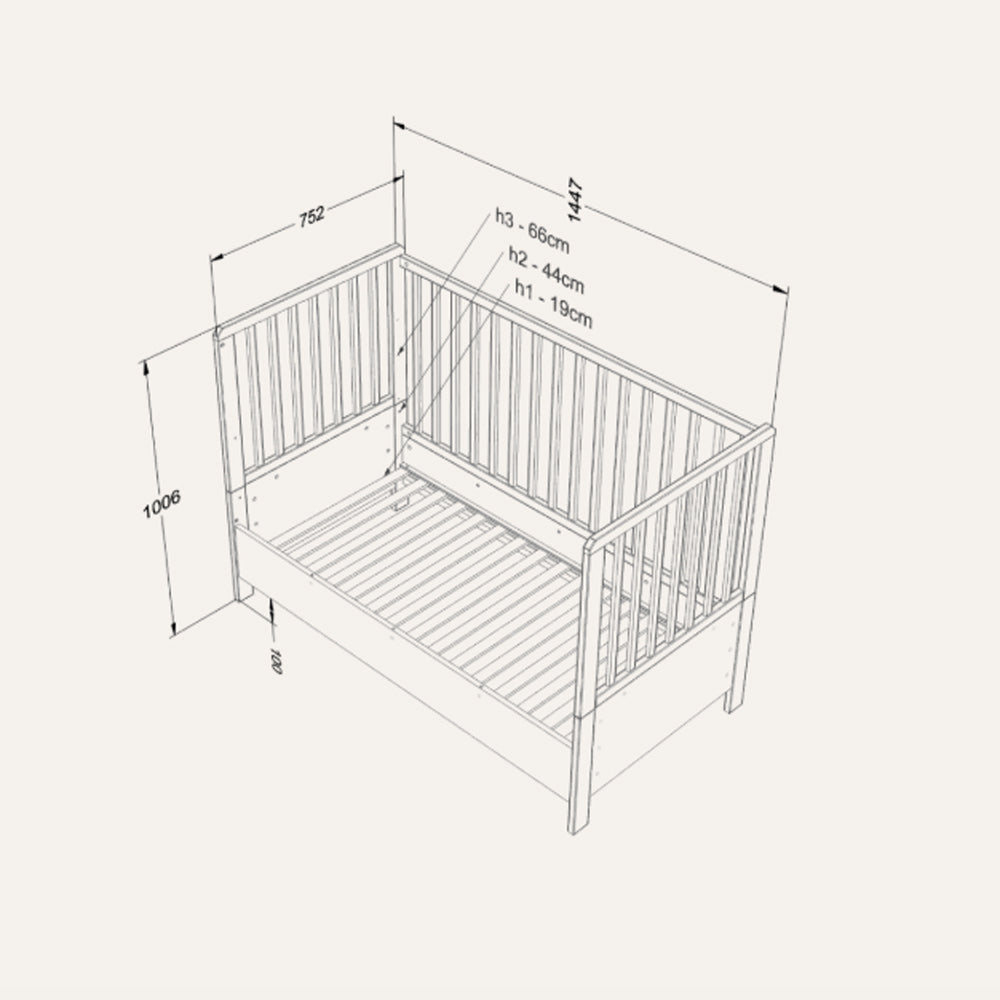 Entdecke unser vielseitiges Babybett mit 3 Verstellstufen für die Matratzenauflage! Ein Seitenrahmen verfügt zudem über 3 herausnehmbare Sprossen, die es einfach machen, wenn dein Kind älter ist und frei ein- und aussteigen möchte. Das Bett ist mit zusätzlichen Seitenwänden ausgestattet, die es ermöglichen, es zunächst in ein Sofa und später in ein Bett für ältere Kinder zu verwandeln. Die spezielle Form der zusätzlichen Seitenwände schützt dein Kind vor dem Herausfallen. Das Bett ist für Matratzengröße 70×140 cm angepasst und bietet somit einen sicheren und bequemen Schlafplatz.