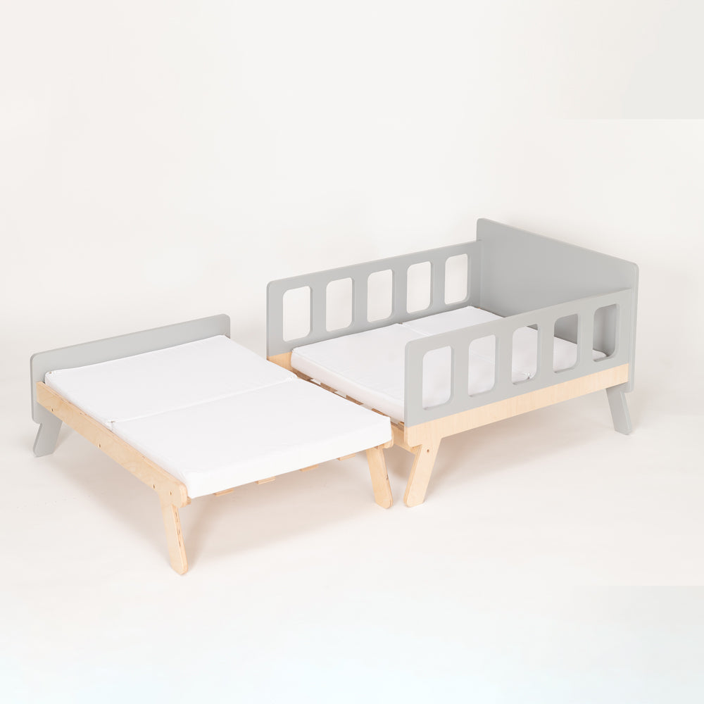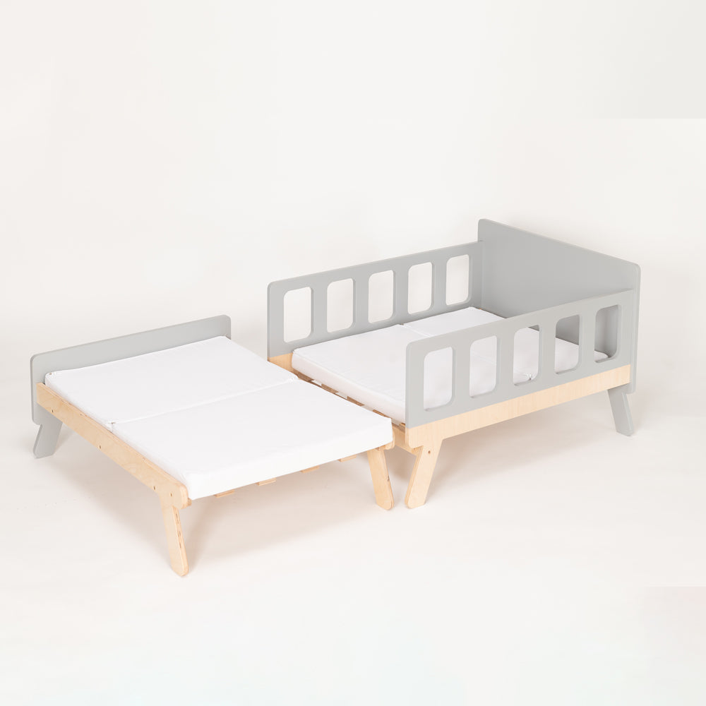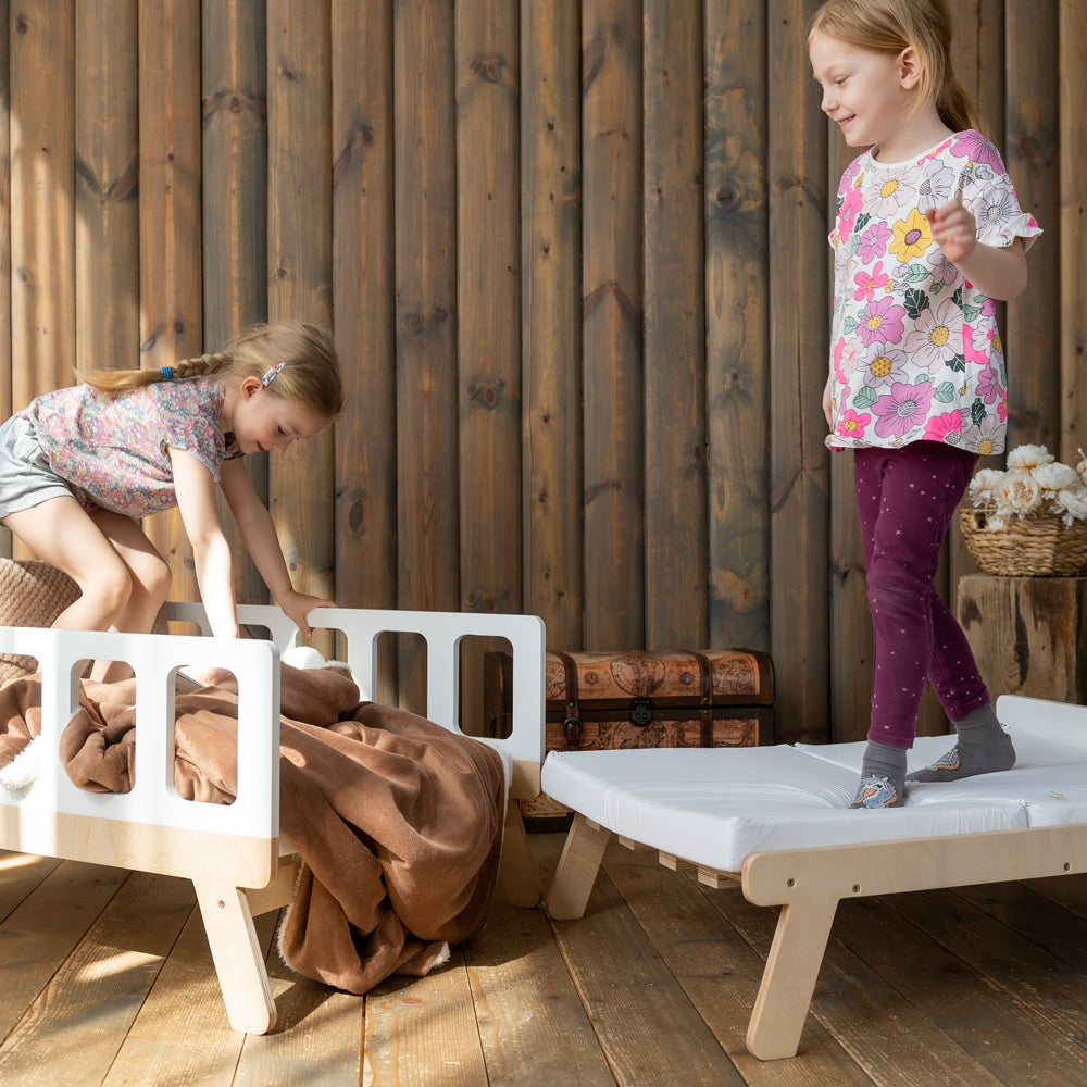 Ob zum Schlafen, Spielen oder Sitzen – dieses vielseitige Möbelstück verwandelt sich im Handumdrehen in genau das, was dein Kind gerade braucht. Mit wenigen Handgriffen wird aus dem Bett eine gemütliche Couch, die zum Lesen, Kuscheln oder Spielen einlädt. Und weil du es bei uns in 8 wunderschönen Farben wählen kannst, lässt es sich perfekt zu jedem Kinderzimmerstil auswählen.