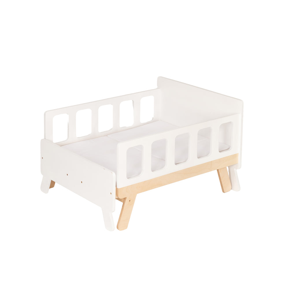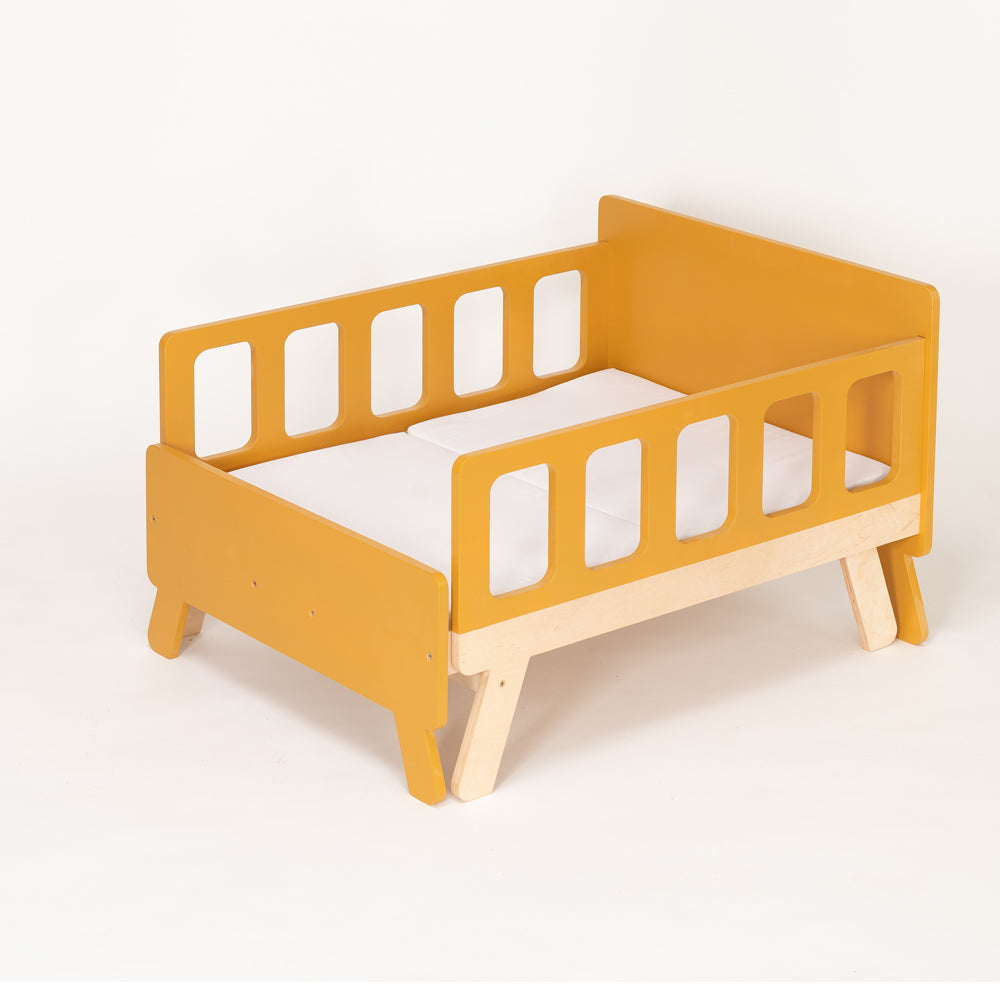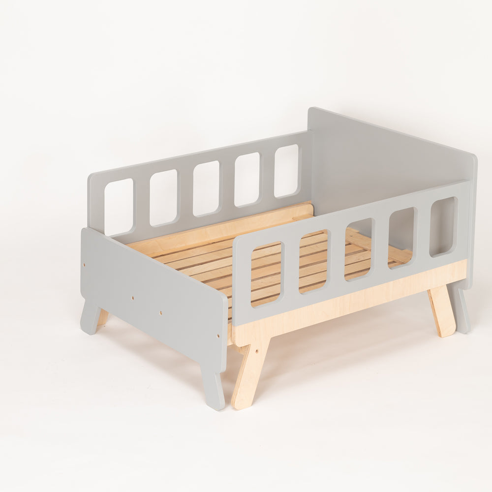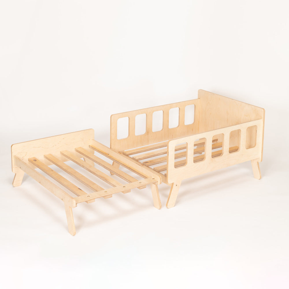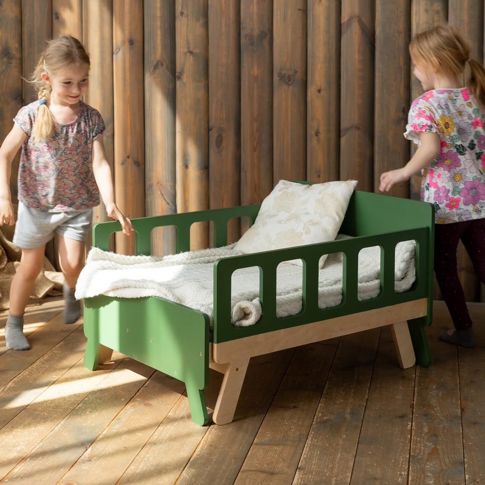 Gefertigt aus robustem Birkensperrholz und mit einer praktischen Matratze ausgestattet, bietet das Kinderbett nicht nur Komfort, sondern auch Sicherheit für viele Jahre. Sein zeitloses Design macht es zu einem echten Lieblingsstück, das sich harmonisch in euer Zuhause einfügt – ein Möbel, das Geschichten erzählt und Erinnerungen schafft.