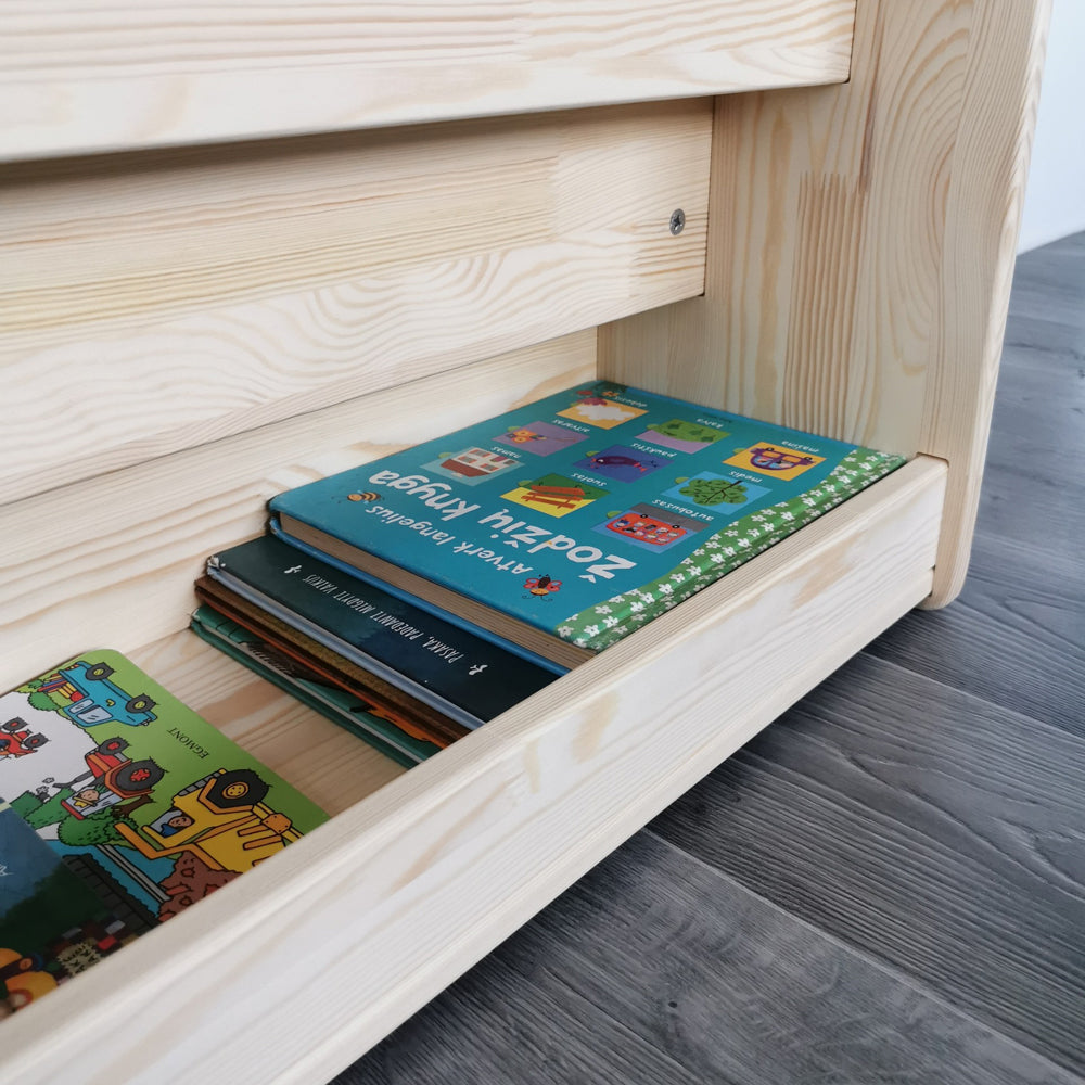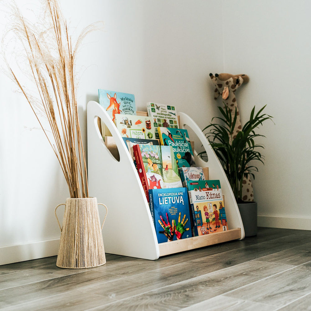 Hinter der charmanten Bücherpräsentation verbirgt sich ein zusätzliches Staufach, perfekt für Lieblingsgeschichten, Bastelmaterial oder Kuscheltiere. So bleibt das Kinderzimmer ordentlich, ohne dass der Spaß am Entdecken verloren geht. Gefertigt aus hochwertigem Birkenholz und mit abgerundeten Ecken ist das Regal nicht nur sicher, sondern auch langlebig und stabil – ein Begleiter, der mit deinem Kind wächst.