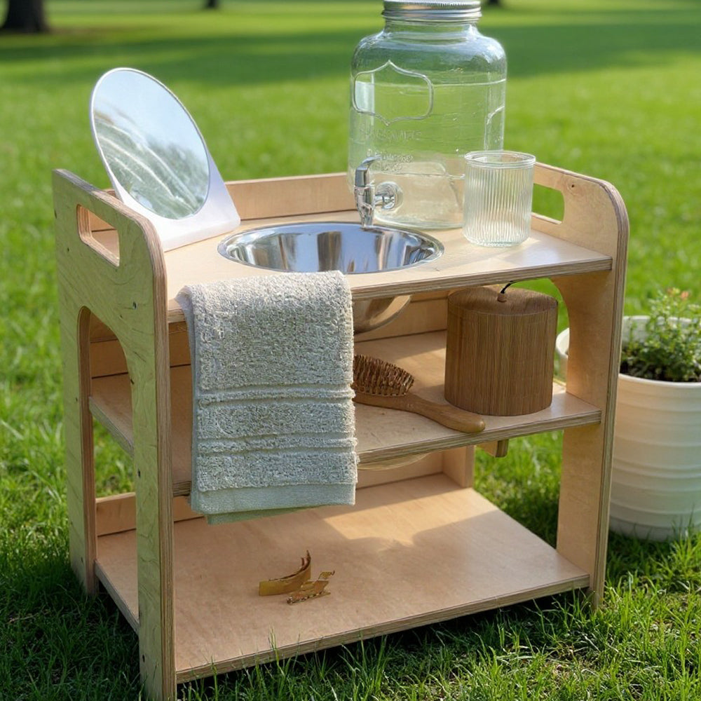 Mit diesem Montessori-Kinderwaschtisch schenkst du deinem Kind die Möglichkeit, tägliche Hygienerituale ganz eigenständig zu entdecken. Händewaschen, Zähneputzen oder Spielen mit Wasser werden zu kleinen Erfolgsmomenten, die das Selbstvertrauen deines Kindes stärken.
