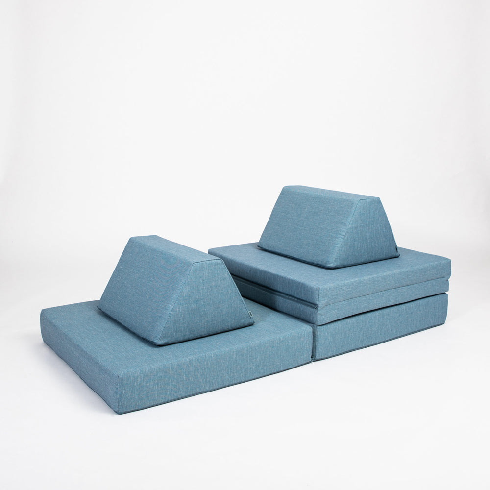 Ob als Indoor-Turnmatte, Kuschelsofa oder kreative Baufläche – dein Kind entscheidet selbst, was es heute sein darf. Durch die trapezförmigen Kissen entstehen Burgen, Höhlen oder Rutschen, die kleine Entdecker immer wieder neu erfinden. So bleibt dein Kind aktiv, kann seine Energie loswerden und gleichzeitig Stress abbauen – ganz ohne Bildschirmzeit.